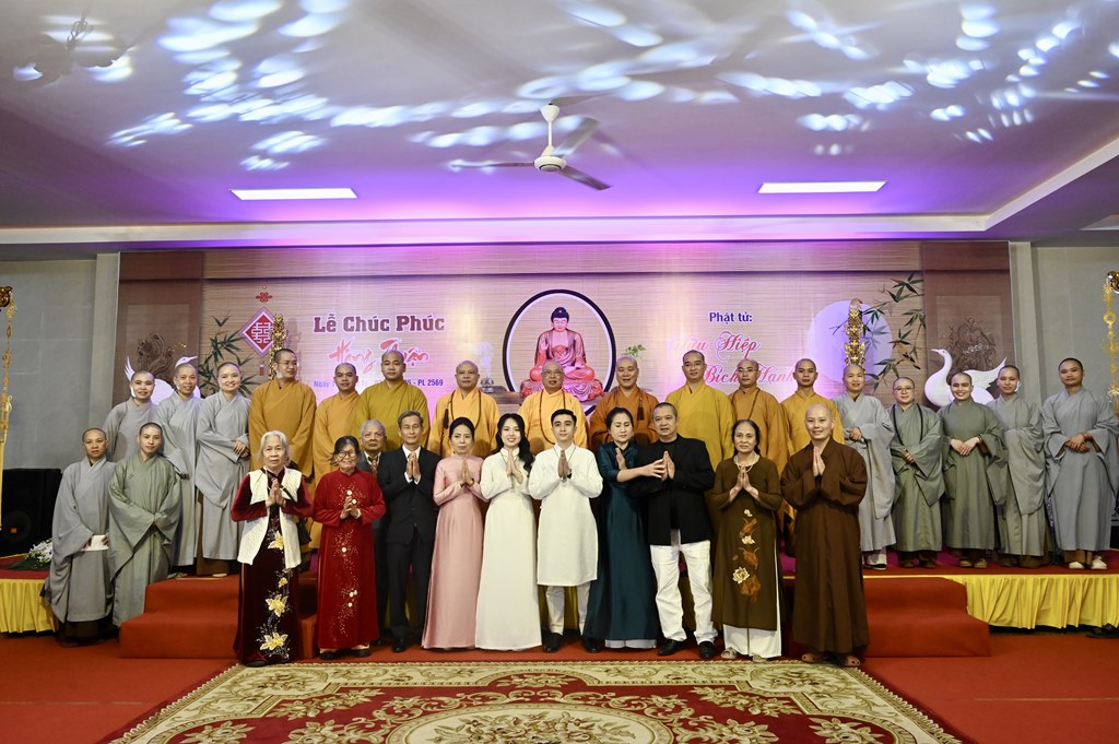 Quang lâm chứng minh và chúc phúc cho đôi bạn trẻ có sự hiện diện của Hòa thượng Thích Thanh Giác – Trụ trì chùa Long Hoa, trưởng BTC buổi lễ; Thượng tọa Thích Giác Sơn – Ủy viên BTS GHPGVN thành phố Hải Phòng, chư tăng chùa Phổ Chiếu; Thượng tọa Thích Thanh Quang – Chánh thư ký, Phó Ban trị sự GHPGVN tỉnh Hưng Yên, cùng chư tôn đức Tăng Ni trụ trì các chùa trong và ngoài thành phố Hải Phòng.