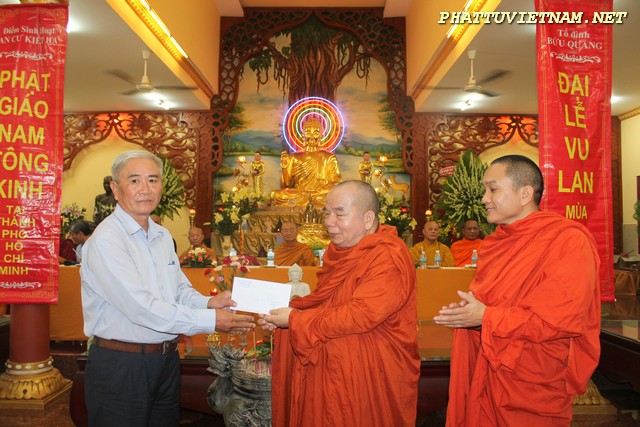 Nhân dịp này, HT.Thích Thiện Tâm trao tặng 15 triệu đồng (MTTQ-Quận Thủ Đức) ủng hộ qũy vì người nghèo, qũy biển đảo quê hương.