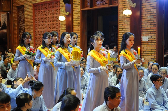 Chương trình được bắt đầu bằng nghi thức dâng lục cúng dường do các em thiếu niên Phật tử tại Tịnh Viện Pháp Hạnh thực hiện.