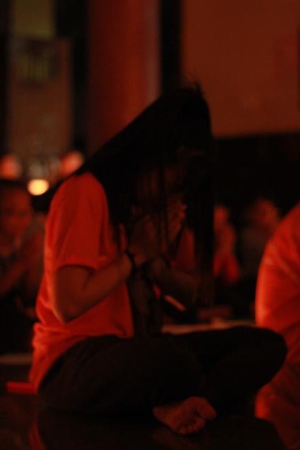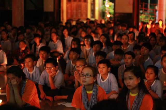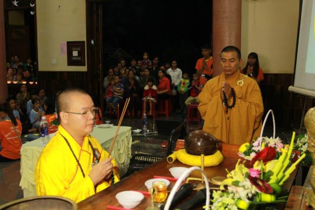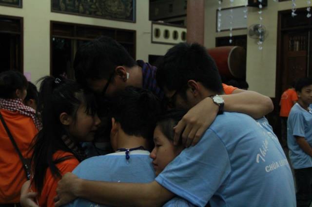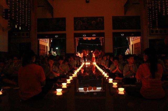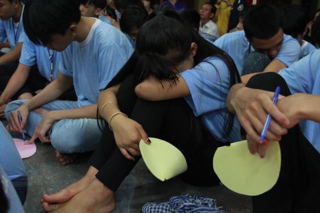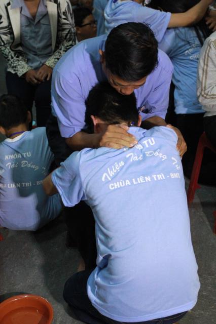 Đêm thứ ba của khóa tu, sự nhớ nhung bố mẹ, thiếu vắng vòng tay yêu thương và thèm hơi ấm của gia đình đã đông đầy trong trái tim của mỗi tu sinh. BTC khóa tu đã rất hiểu điều đó nên gọi điện mời từng gia đình, mời bố mẹ của các bạn trẻ trở về chùa Liên Trì tham dự đêm chương trình Giọt Hồng Thiêng.
