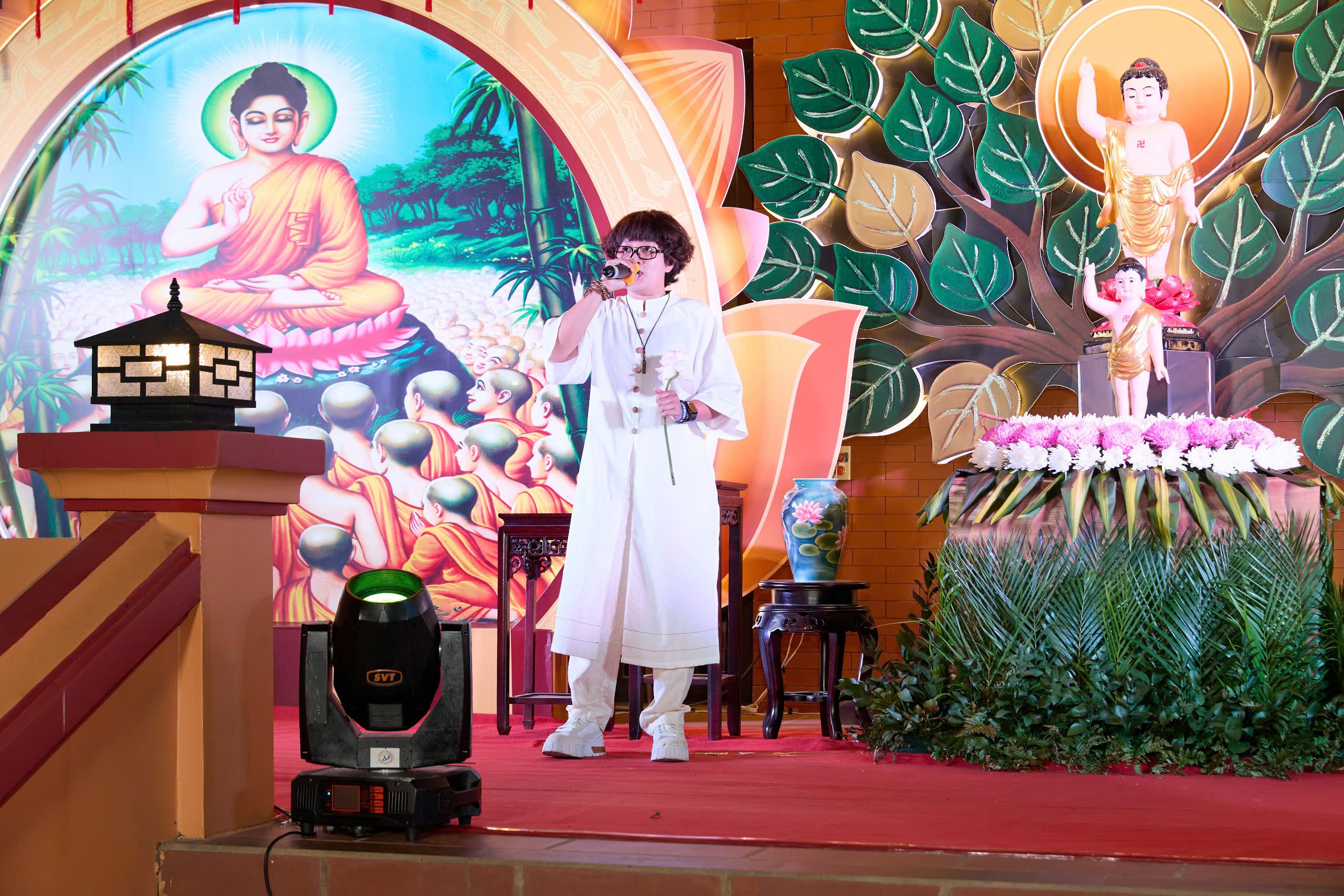 Mở đầu chương trình là đêm văn nghệ “Phật Đản Kiết Tường”, với sự góp mặt của nhóm Mắt Ngọc, nhóm Lạc Việt, ca sĩ Đông Quân, Thùy Anh, Liêu Kỳ, cùng các Phật tử Chùa An Hòa. Những tiết mục ca múa Phật giáo giàu tính nghệ thuật và đạo vị đã mang đến bầu không khí thiêng liêng, xúc động và đầy ý nghĩa cho đêm lễ hội – như những đóa sen lòng dâng lên cúng dường ngày Khánh Đản.