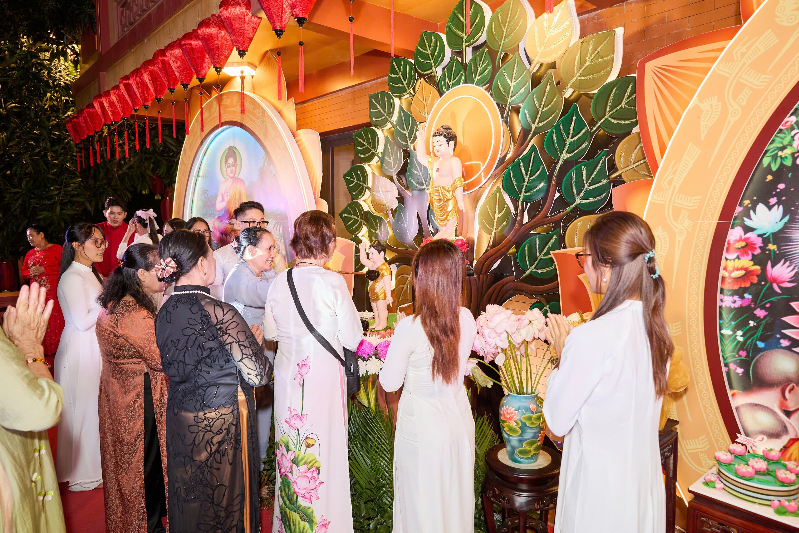 Một trong những nghi lễ thiêng liêng nhất của buổi lễ là nghi thức Tắm Phật. Dưới sự hướng dẫn của Thượng tọa trụ trì, đại chúng đồng thanh trì niệm danh hiệu Nam mô Bổn Sư Thích Ca Mâu Ni Phật và cung kính tưới nước thanh tịnh lên kim thân Đức Phật sơ sinh, thể hiện lòng thành kính và phát nguyện thanh lọc thân tâm trong ánh sáng tuệ giác của Như Lai.