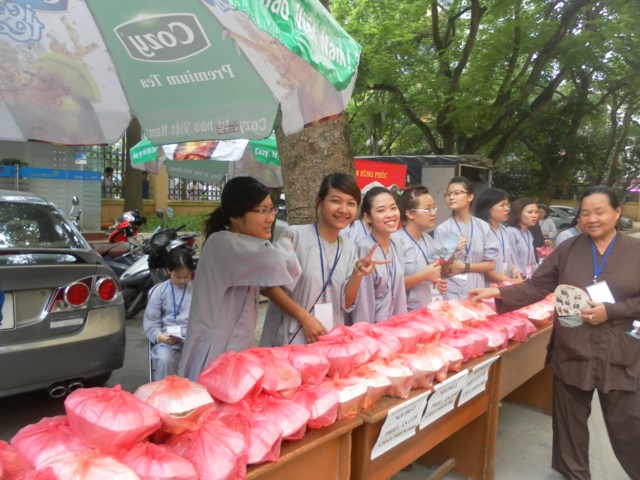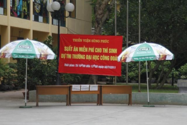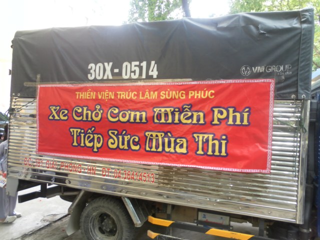 Hơn 1000 suất cơm chay của Thiền viện Sùng Phúc được phát tại ba điểm thi, trong đó có hai điểm thi của trường Đại học Công đoàn – 169 Tây Sơn, trường THCS Lý Thường Kiệt – 104 Nguyễn Khuyến; một điểm thi của Học viện Ngoại giao tại trường THCS Trưng Vương – 26 Hàng Bài.