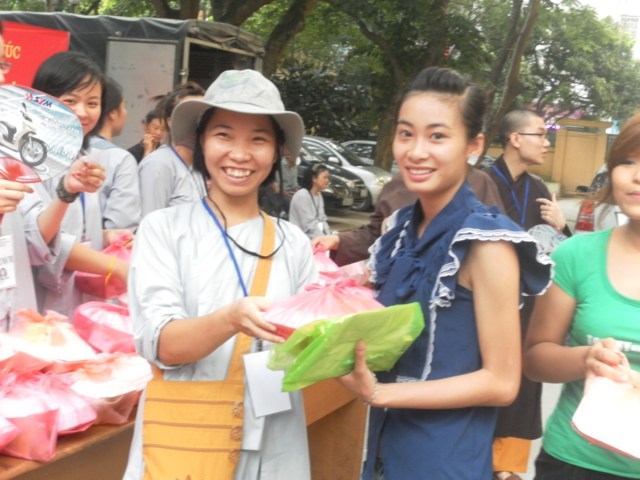 Nhìn ánh mắt rạng rỡ của các thí sinh khi đón nhận những suất cơm, sự chu đáo ân cần của Quý Thầy và các Phật tử khi phát cơm mà tôi không khỏi xúc động.