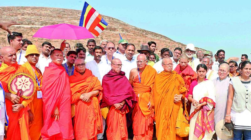 Đại biểu và nhà tu hành Phật giáo đến từ 41 quốc gia viếng thăm Stupa Maha, được xây dựng cách đây 1.700 năm tại Nelakondapalli hôm chủ nhật, ngày 27/2/2017.