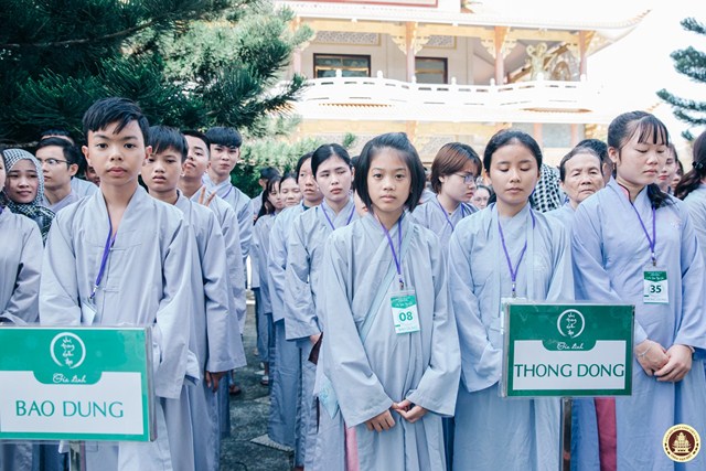 Sau buổi lễ khai mạc, các bạn được quý Thầy hướng dẫn những oai nghi cần thiết của người Phật tử. Năm nay, các bạn trẻ được Ban Tổ chức chia thành 10 gia đình: Thảnh Thơi, Thong Dong, Tự Tại, Hoan Hỷ, Hạnh Phúc, Tỉnh Thức, Lắng Nghe, Bao Dung, Thấu Hiểu và Vững Chãi.