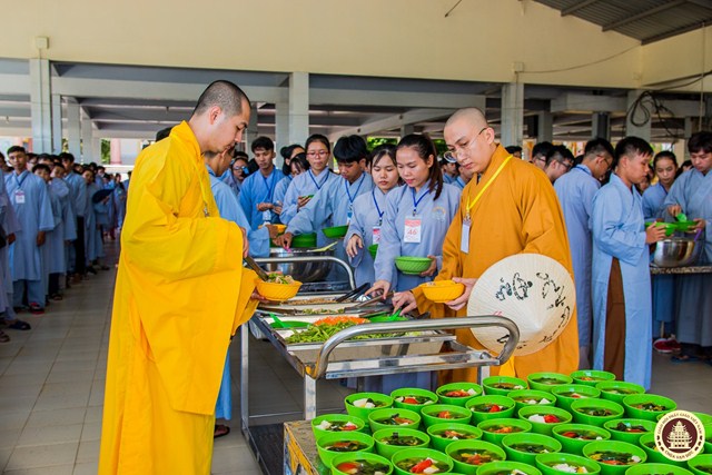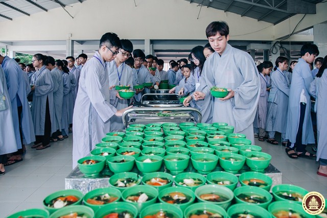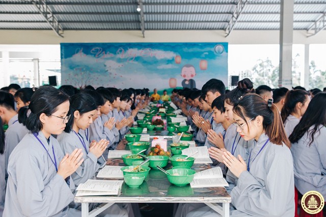 Tại đây, các bạn trẻ còn được quý Thầy hướng dẫn thực tập nghi thức cúng quả đường vào mỗi buổi trưa, nhằm hướng đến các bạn dùng cơm trong chánh niệm. Đây là nghi cách đặc biệt trong việc tri ân và báo ân ngay trong bữa ăn của mình. Trước khi ăn phải cúng dường, phải tưởng niệm và sau đó thực tập năm phép quán trong lúc ăn.