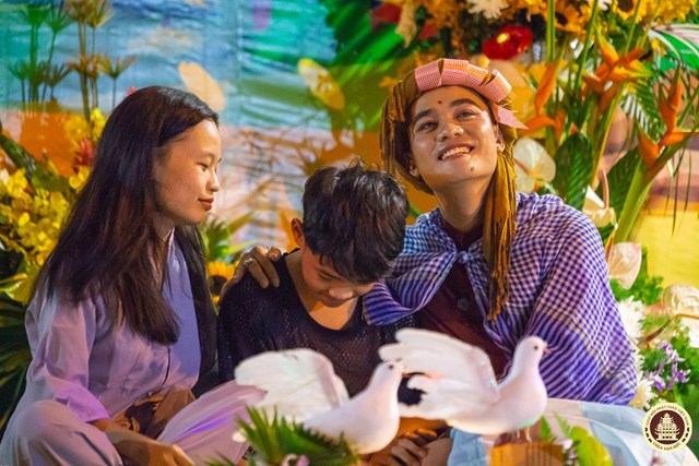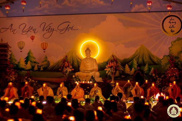 Một trong những hoạt động nổi bật nhất tại Khóa tu là đêm hội hoa đăng thiêng liêng “Về nhà đi con…” tràn đầy cảm xúc.Với sự chuẩn bị chu đáo và công phu, BTC đã mang lại một chương trình đầy ý nghĩa và xúc động. Không chỉ là ngồi trước ngọn nến và hồi tưởng về người cha, người mẹ của mình, các bạn trẻ còn được hoá thân làm cha, làm mẹ của nhau và cùng trải nghiệm những chông gai cạm bẫy trong cuộc sống. Để từ đó, các bạn thêm thấm thía về tình cảm gia đình, đặc biệt là tình cha, tình mẹ. Và rồi, những dòng nước mắt đã rơi, có thể nói, cảm xúc lúc này của các bạn đều là mong muốn trở về nhà và ôm chầm lấy người cha, người mẹ của mình để nói lời cảm cảm ơn họ: “Cảm ơn cha, cảm ơn mẹ, vì đã ban cho con cả một cuộc đời”. Trong đêm hội lần này, các bạn đã khóc thật nhiều, những giọt nước mắt yêu thương, giọt nước mắt hối hận đã rơi xuống và các bạn đã dùng tâm lành hồi hướng công đức cầu nguyện cho Cha Mẹ mạnh khỏe, tâm an.