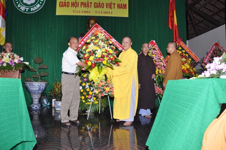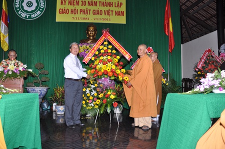 Khách mời có ông Nguyễn Văn Lượm – Thường vụ tỉnh ủy, Trưởng Ban Dân vận; ông Võ Thanh Tâm – Phó Giám đốc Sở Nội vụ, Trưởng Ban Tôn giáo; ông Trần Thanh Tộc – Phó Chủ tịch UBMTTQ tỉnh An Giang; quý ông, bà đại diện các Sở, ban ngành tỉnh An Giang, Tp. Long Xuyên và phường Mỹ Bình sở tại.