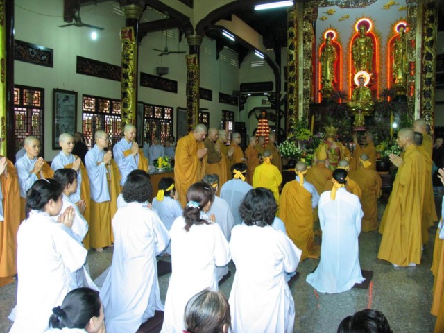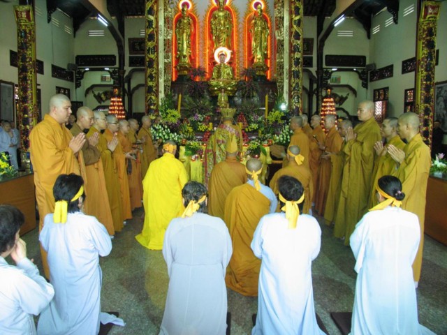 Sau đây là chùm ảnh về lễ bạch Phật khai kinh, lễ tiến sư và lễ Bố tát do TT.Thích Đồng Văn và TT.Thích Quảng Chơn chủ trì trong tang lễ và lúc 14h là lễ đăng đàn chẩn tế mông sơn thí thực nguyện cầu âm siêu dương thới do TT.Thích Đồng Văn cùng ban kinh sư chùa Viên Giác cử hành: