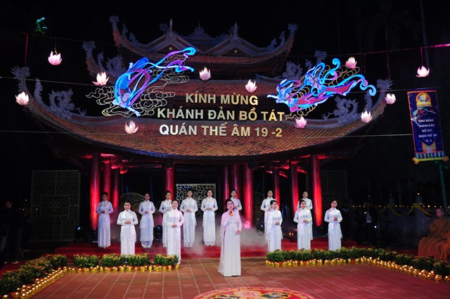 Đêm nhạc được dàn dựng rất công phu, là tấm lòng thành kính dâng lên Bồ Tát Quán Thế Âm – Phật chủ chùa Hương của các nghệ sỹ là những người con Phật, cùng với sự tham dự của tổng đạo diễn chương trình, Phật tử Phạm Nam Chung ( Huệ Văn) – Ủy viên Ban văn hóa TƯ GHPGVN, chỉ đạo nghệ thuật: TT. Thích Minh Hiền, đạo diễn âm nhạc, phật tử Tiến Sỹ: Cù Lệ Duyên ( Diệu Thiện) cùng các nghệ sỹ, các ca sỹ, dàn hợp xướng đến từ Học viện âm nhạc Quốc gia Việt Nam, hợp xướng Hương Thiên ( Chùa Hương)… Những giai điệu sâu lắng trong chương trình đã mang đến cho chư tôn đức Tăng Ni, quý Phật tử và du khách thập phương những giây phút thiêng liêng, ấm cúng và tràn đầy tình đạo vị.