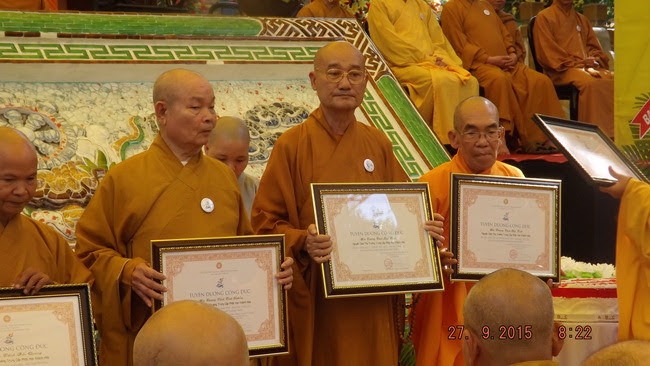 Nhân dịp này, BTS GHPGVN tỉnh Khánh Hòa đã trao bằng tuyên dương công đức Ban giám hiệu, Ban giáo thọ, các giảng viên, Ban bảo trợ trường TCPH tỉnh Khánh Hòa vì sự nghiệp giáo dục đào tạo Tăng Ni trong 25 năm qua.