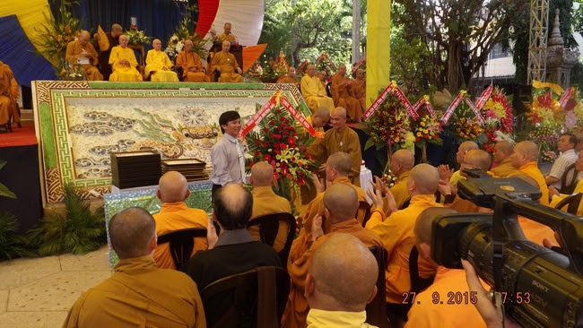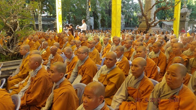 Sáng ngày 26-9-2015 (14-8-Ất Mùi) khi vạn vật còn im lìm trong giấc ngũ thì tại giảng đường trường TCPH – chùa Long Sơn (Nha Trang) không khí nhộn nhịp, tấp nập hẵn lên. Đoàn Chư Tôn đức Tăng Ni, đại biểu, Phật tử các nơi nô nức vân tập về giảng đường nhà trường tham dự Hội thảo.