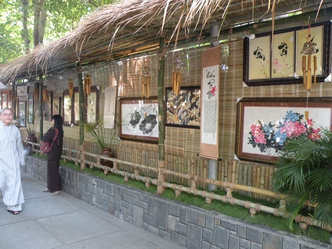Đại biểu khi bước vào cổng chùa Sắc tứ Long Sơn (Nha Trang) khẩu hiệu Trường Trung cấp Phật học Khánh Hòa 25 năm thành lập và các pano chào mừng chư Tôn đức Tăng Ni, quý vị khách quý, đại biểu, phật tử về tham dự lễ Kỷ niệm. Hoành tráng, uy nghi nhất của Khu triển lãm là Vườn Hoa, Thiền thất Long Sơn đã trưng bày hình ảnh Kỷ niệm 25 năm với biết bao chứng tích đầy ắp kỷ niệm của Chư Tôn đức tiền bối hữu công đã từng gắn bó với ngôi trường Trung cấp Phật học. Gian triển lãm của Tăng Ni sinh khóa V đã vận dụng thế mạnh thư pháp của mình thành một khu vực triển lãm riêng, có lẽ đây là khóa học đánh dấu chặng đường của đệ nhất Hiệu trưởng Trường TCPH Khánh Hòa Hòa thượng Thích Trí Tâm nhiệm kỳ 1990-2010 và gian triển lãm Thiền trà của Tăng Ni sinh khóa VII, khóa vinh dự có mặt đông đủ vì hiện đang học năm thứ ba tại trường.