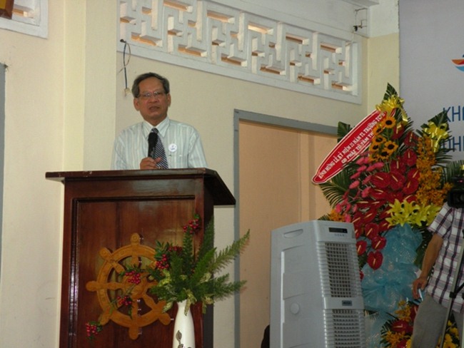 Hòa thượng Thích Quảng Thiện, Phó Trưởng BTS- Trưởng Ban Từ thiện xã hội, Trưởng Ban Bảo trợ phát biểu tán thán công đức những đóng góp của Giáo hội, của các nhà Mạnh thường quân cho Tăng Ni sinh trong 25 năm qua.