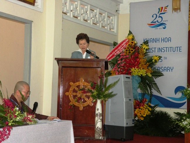 Ông Bùi Hữu Dinh- Phó Trưởng Ban Tôn giáo tỉnh Khánh Hòa phát biểu chúc mừng, mong rằng với những thành tựu mà trường TCPH tỉnh nhà đã đạt được trong 25 năm qua sẽ được phát huy tiếp tục trong thời gian đến. Đồng thời ông cũng gửi lời chúc cho sự nghiệp giáo dục đào tạo Tăng tài tại tỉnh nhà đạt nhiều kết quả tốt đẹp hơn nữa, góp phần xây dựng quê hương Khánh Hòa ngày càng phát triển đáp ứng với phát triển chung của xã hội.