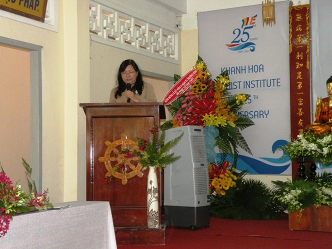 ĐĐ.Thích Thiện Phước, Phó Thư ký, Chánh Văn phòng BTS tỉnh, Phó Hiệu trưởng trường TCPH Khánh Hòa, Phó BTC báo cáo quá trình hình thành và phát triển trường TCPH tỉnh Khánh Hòa. Trong 25 năm qua trường TCPH Khánh Hòa đã đào tạo được 6 khóa và đang đào tạo khóa VII. Nhiều Tăng Ni sinh đã chính thức tham gia hoạt động Giáo hội, là giảng viên các Học viện, trụ trì các chùa, hoặc đang đi du học nước ngoài và trong tương lai sẽ là nguồn lực chính cho Phật sự giáo hội tỉnh nhà.