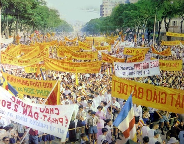 Nếu như Phật đản PL.2507 (1963), Phật giáo Việt Nam ở miền Nam phải trải qua một mùa pháp nạn. Đây là thời kỳ gian khổ, khốc liệt nhất. Tăng, Ni Phật tử đã hi sinh xương máu và nước mắt, nhiều Tăng, Ni, Phật tử đã phải thiêu thân, tuyệt thực để bảo vệ chánh pháp. Ngọn lửa Bồ Tát Quảng Đức tự thiêu tại thành phố Sài Gòn ngày 11-6 -1963 (nhằm ngày 20 tháng 4 nhuận năm Quí Mão), tại ngã tư Phan Đình Phùng và Lê Văn Duyệt Sài Gòn, (nay là đường Cách Mạng Tháng Tám và Nguyễn Đình Chiểu TP HCM) đã làm chấn động cả thế giới, mãi mãi là một nét son trong lịch sử Phật giáo: