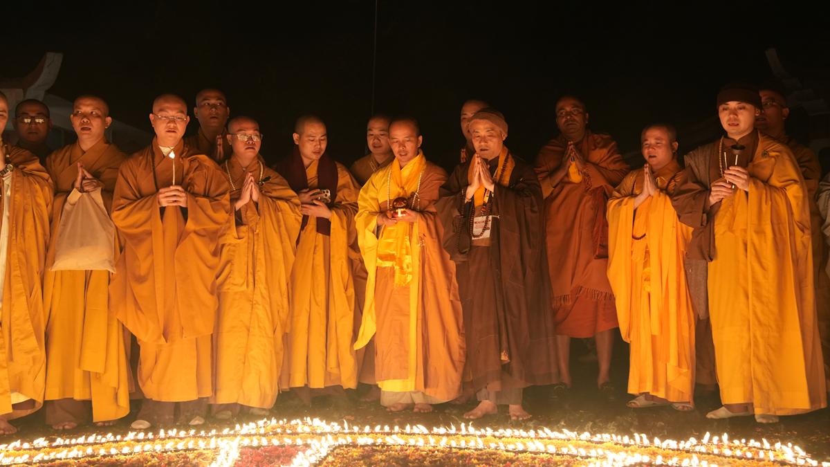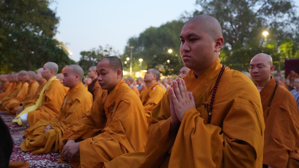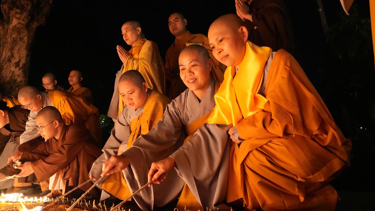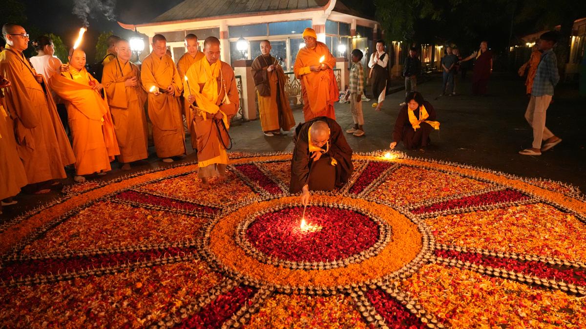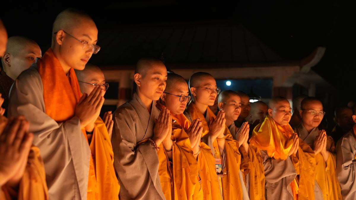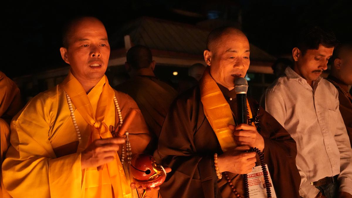 Ánh sáng từ hàng trăm ngọn nến nơi đất Bồ Đề lung linh soi rọi trong đêm, như biểu tượng cho trí tuệ Giác ngộ được thắp sáng từ nội tâm mỗi hành giả.