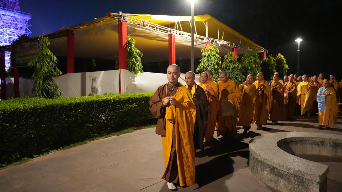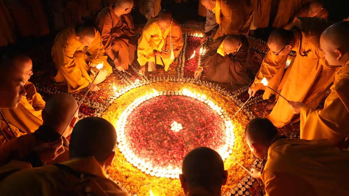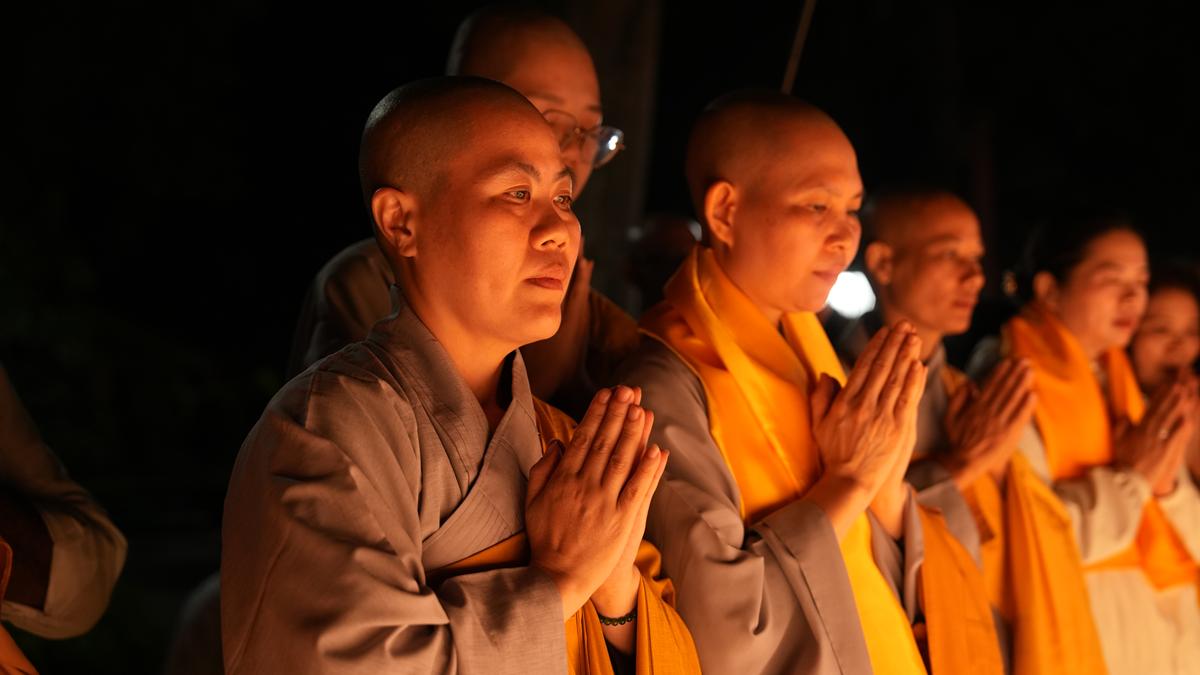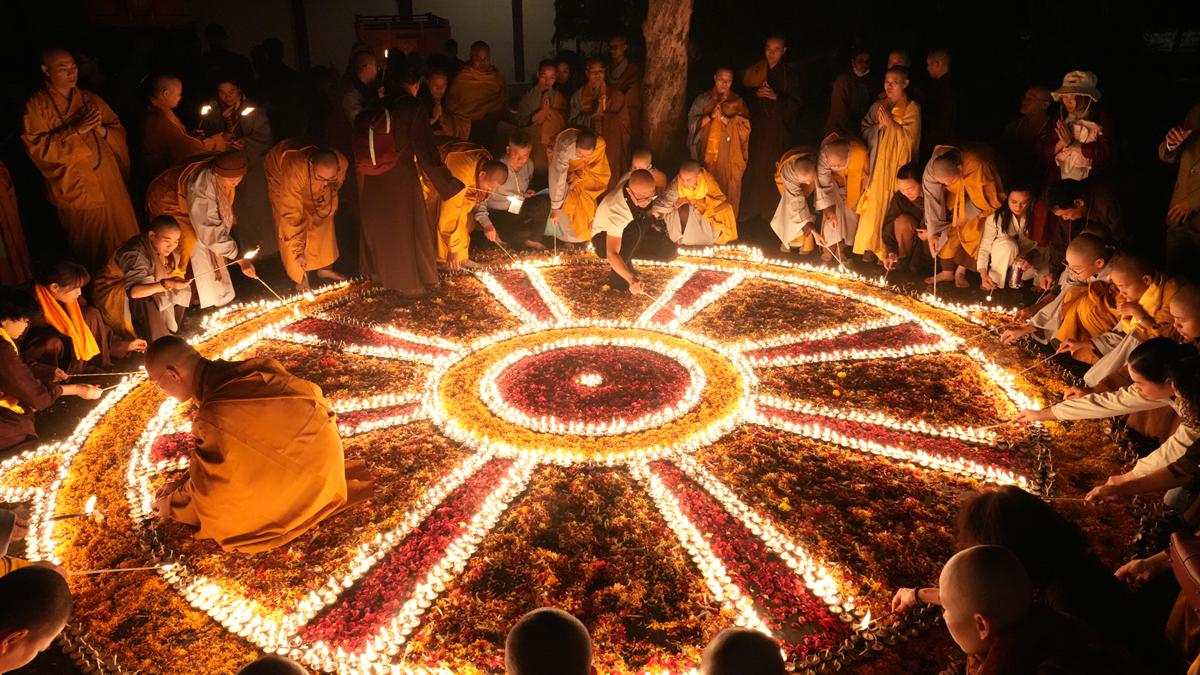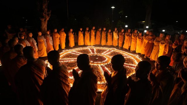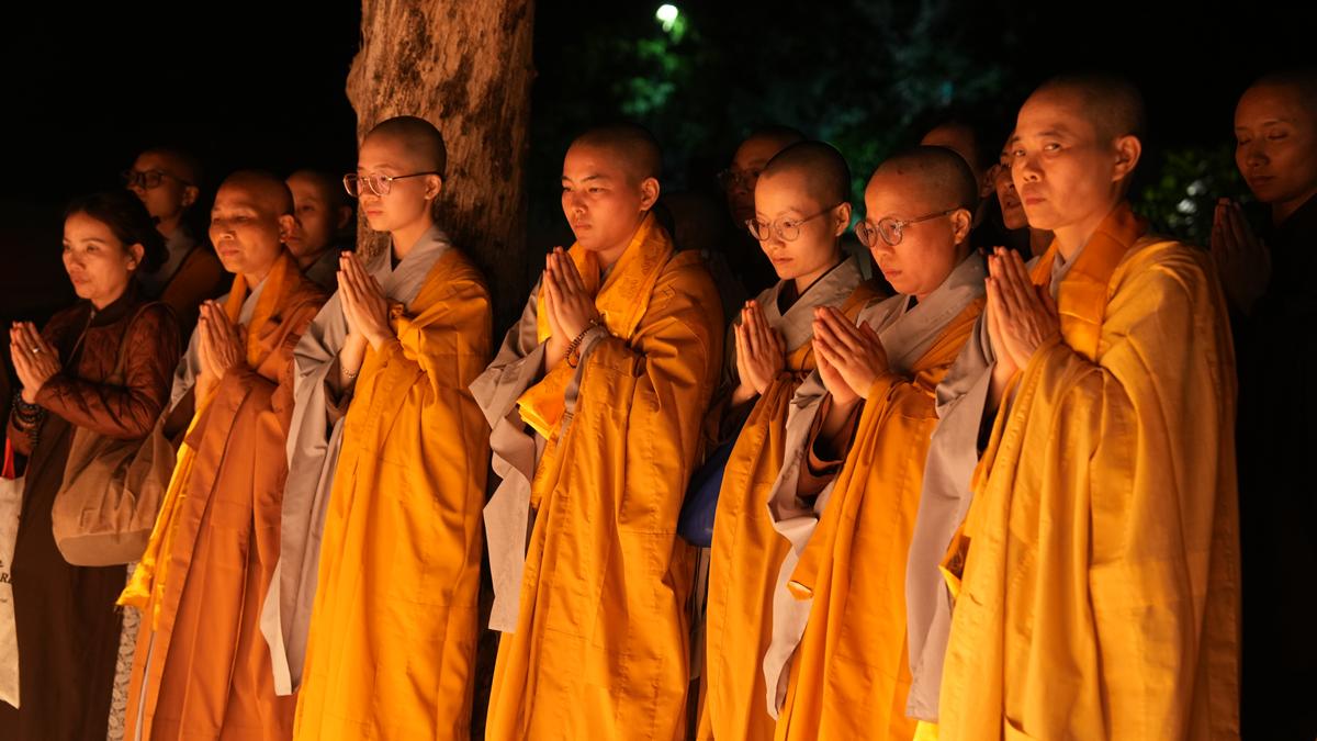 Ánh sáng từ hàng trăm ngọn nến nơi đất Bồ Đề lung linh soi rọi trong đêm, như biểu tượng cho trí tuệ Giác ngộ được thắp sáng từ nội tâm mỗi hành giả.