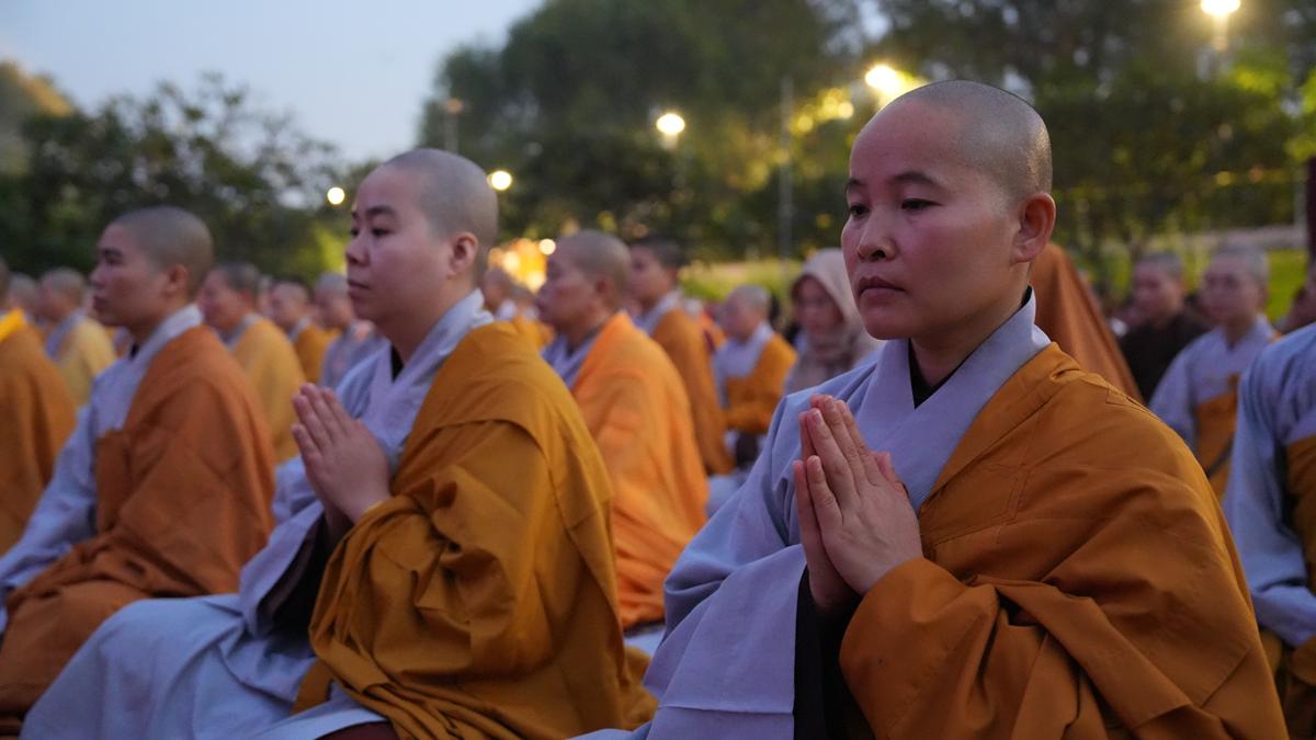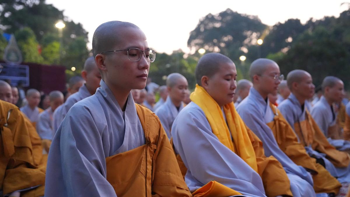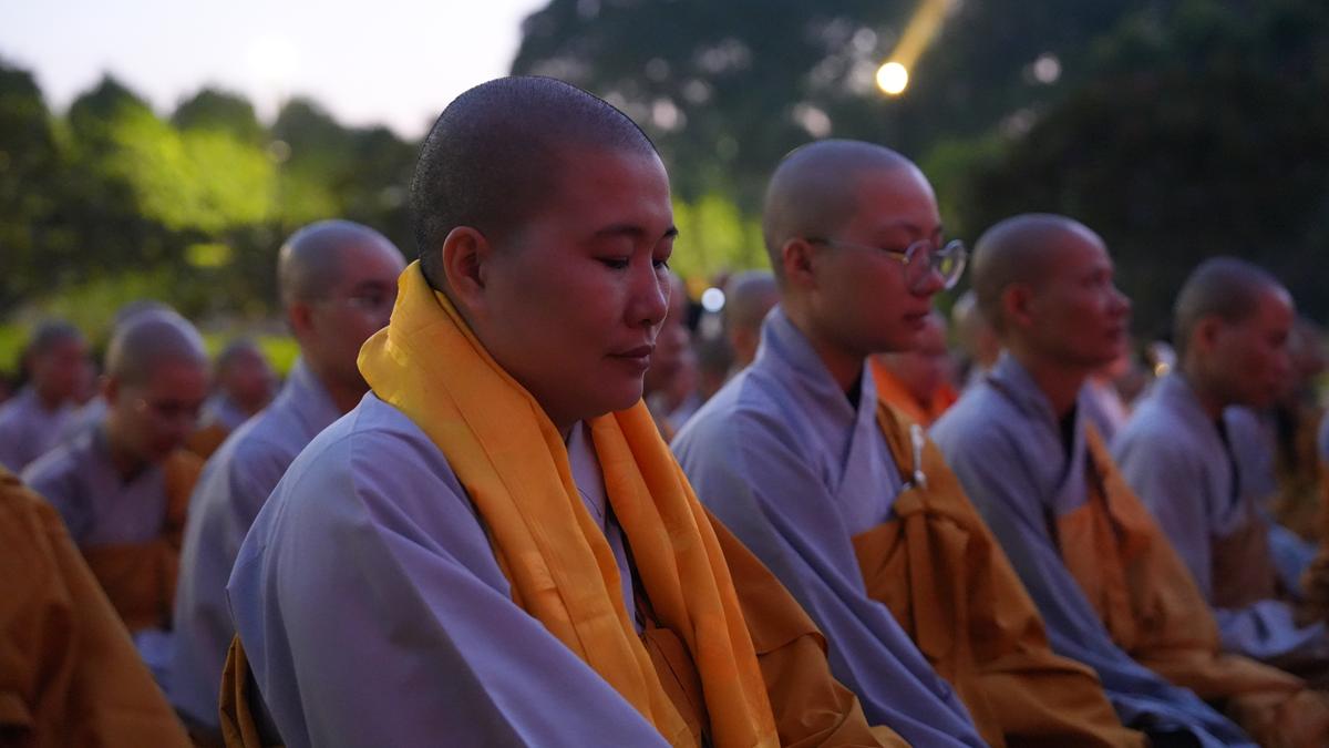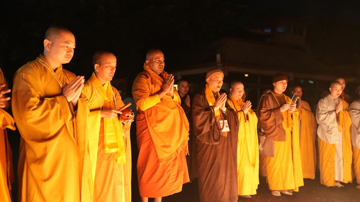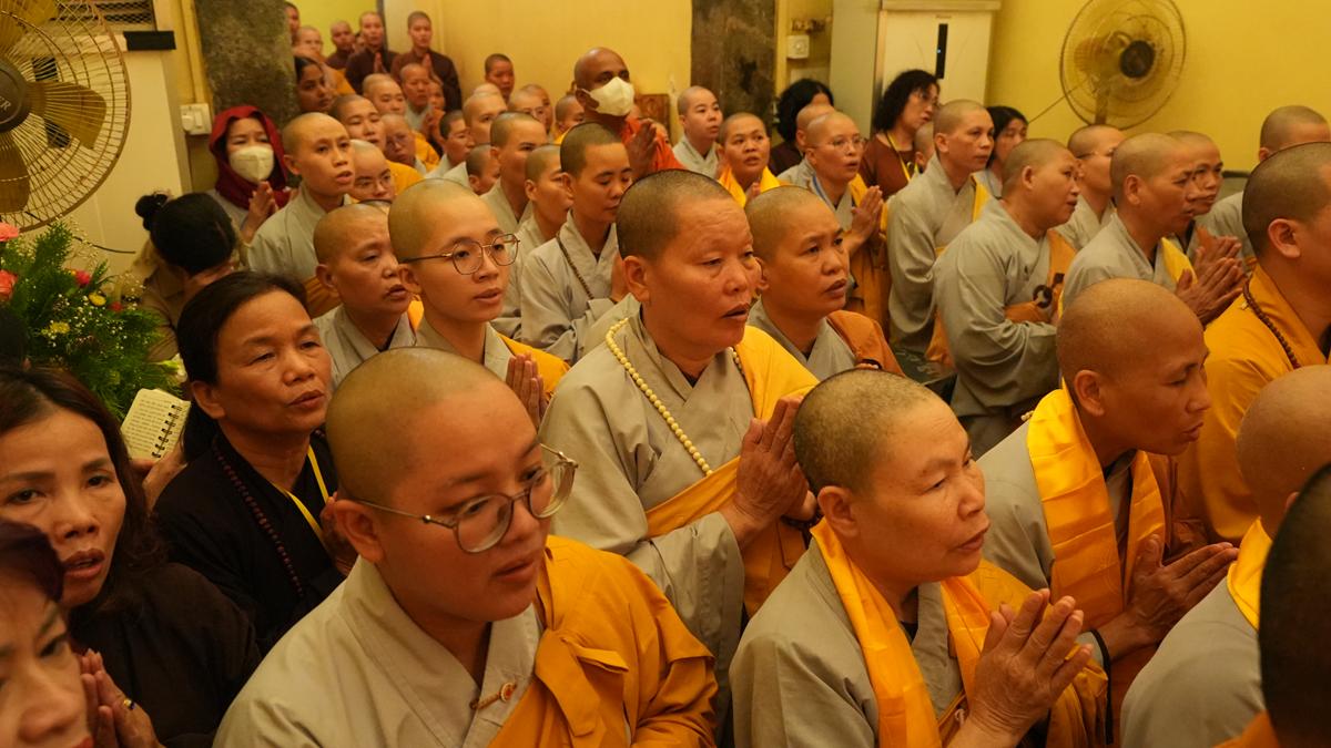 Sau thời pháp, đại chúng trang nghiêm tụng Đại Bi Thập Chú và Kinh Bát Đại Nhân Giác, đồng thời thắp những ngọn nến cầu nguyện thế giới hòa bình, Phật pháp hưng long, chúng sinh an lạc.