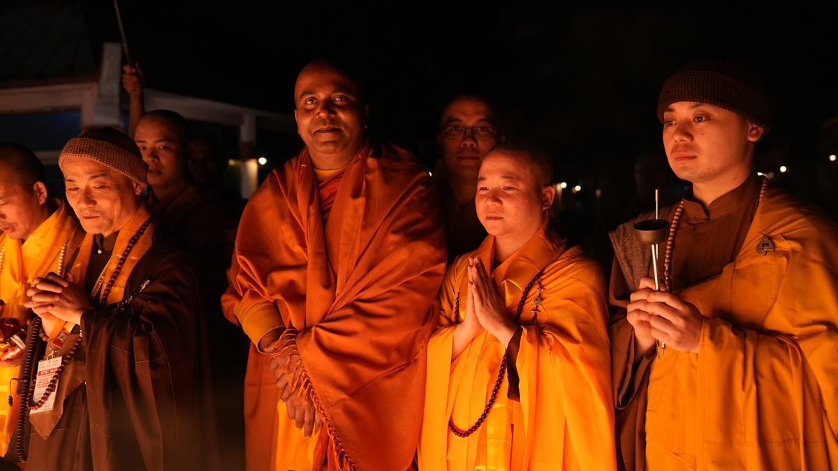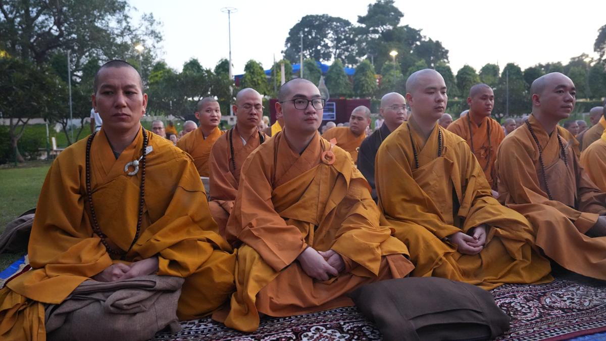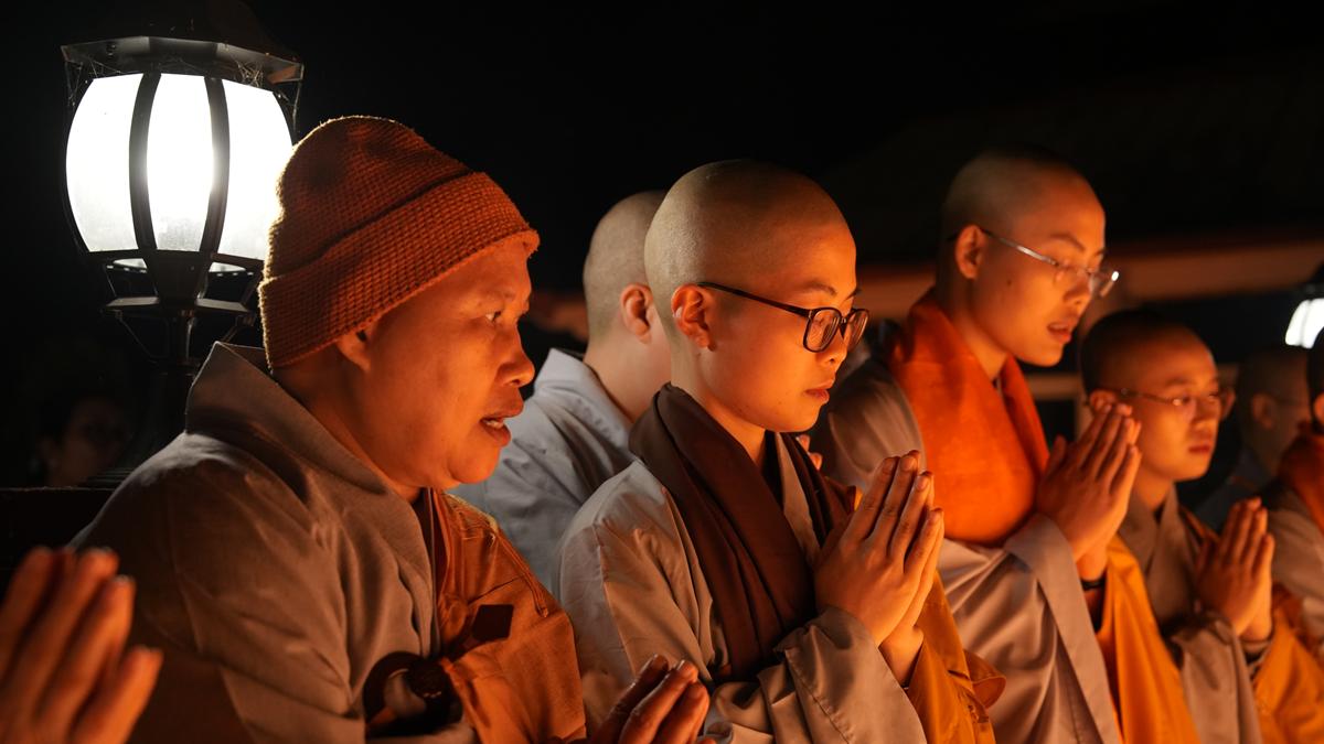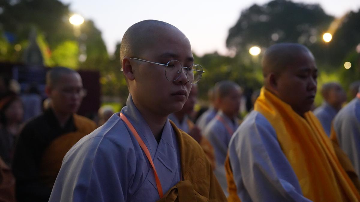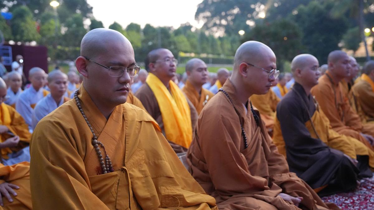Sau thời pháp, đại chúng trang nghiêm tụng Đại Bi Thập Chú và Kinh Bát Đại Nhân Giác, đồng thời thắp những ngọn nến cầu nguyện thế giới hòa bình, Phật pháp hưng long, chúng sinh an lạc.
