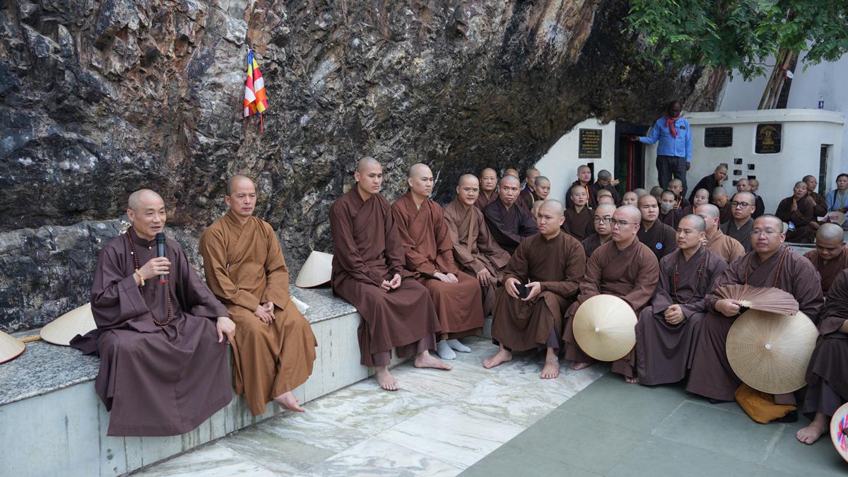 Giữa đỉnh gió núi hoang sơ, sau thời khóa tụng kinh và niệm danh hiệu Đức Ca Diếp Tôn giả, hướng tâm tri ân bậc Thánh đệ tử đã “giữ lửa” cho dòng chính pháp không đoạn diệt. Thượng tọa Thích Tiến Đạt đã giảng giải cho các Tăng Ni sinh hiểu hơn về ý nghĩa sâu xa của sự kiện này, nhấn mạnh rằng hình ảnh Ngài Ca Diếp “tách núi mà vào” không chỉ là sự kiện huyền thoại, mà là biểu tượng cho tinh thần hộ trì Phật pháp bằng định lực, bằng công hạnh tịch tĩnh và sự chứng ngộ nội tâm.