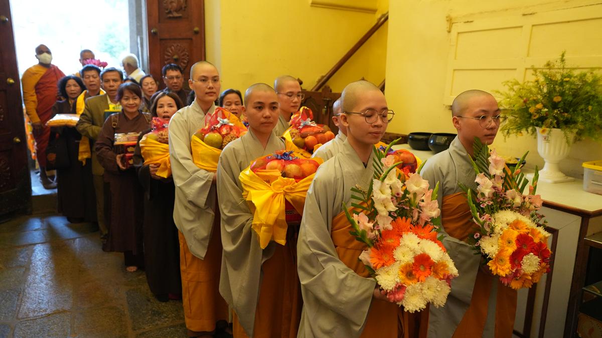 Đoàn do Thượng tọa Thích Tiến Đạt – Cố vấn Ban Giám hiệu Trường Trung cấp Phật học Hà Nội làm trưởng đoàn. Đi cùng đoàn còn có Ðại đức Thích Thái Minh – Chánh Văn phòng Trường Trung cấp Phật học Hà Nội; Ni trưởng Thích Ðàm Khoa – Ủy viên Ban Giám hiệu, Trưởng Ban Bảo trợ học đường; Ni trưởng Thích Ðàm Hà – Ủy viên Ban Giám hiệu, Thủ quỹ nhà trường; Ni sư Thích Ðàm Vân – Thư ký Ban Giám hiệu, Chánh Giáo vụ nhà trường cùng chư Tôn đức Khối văn phòng Nhà trường.