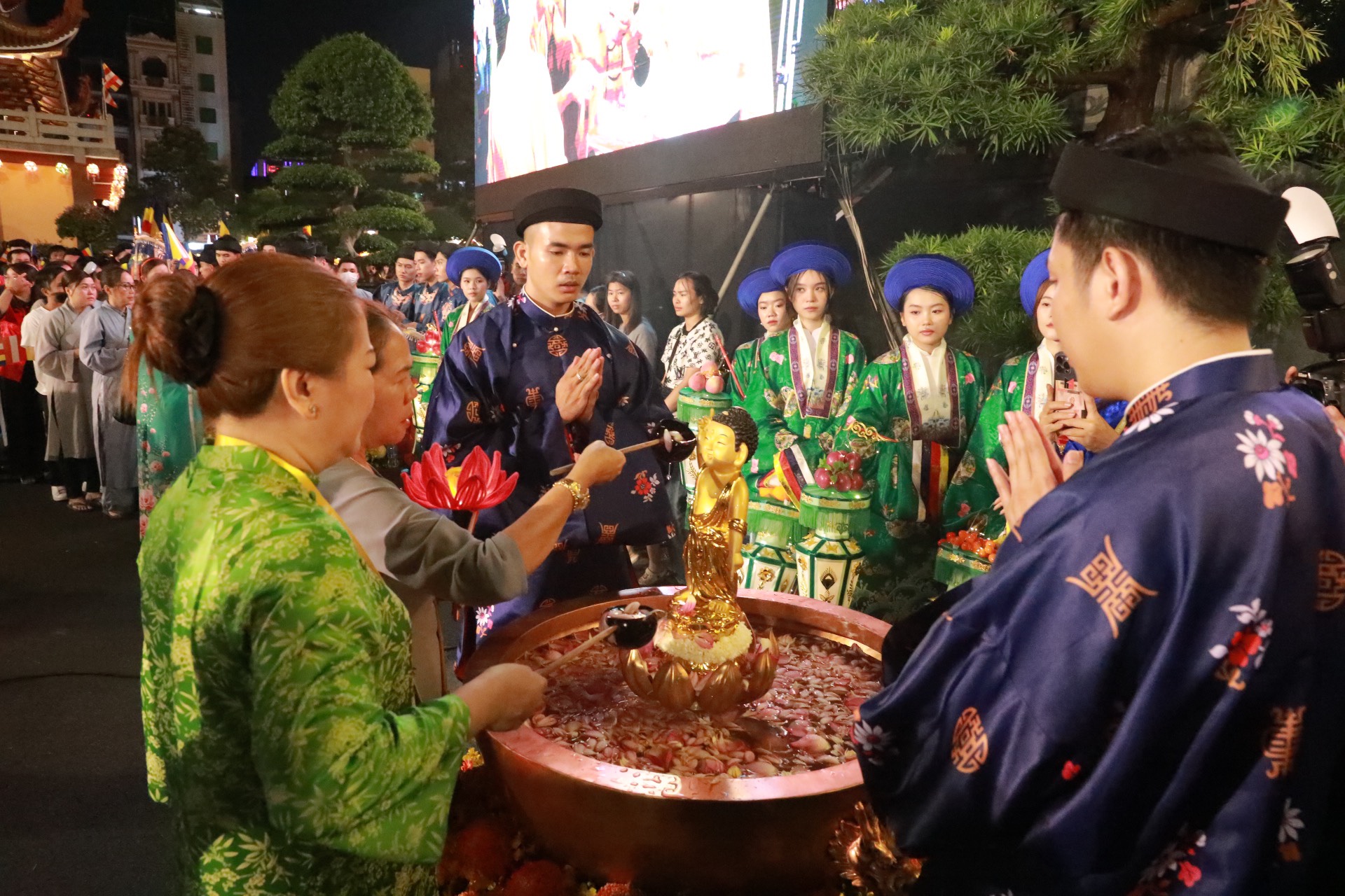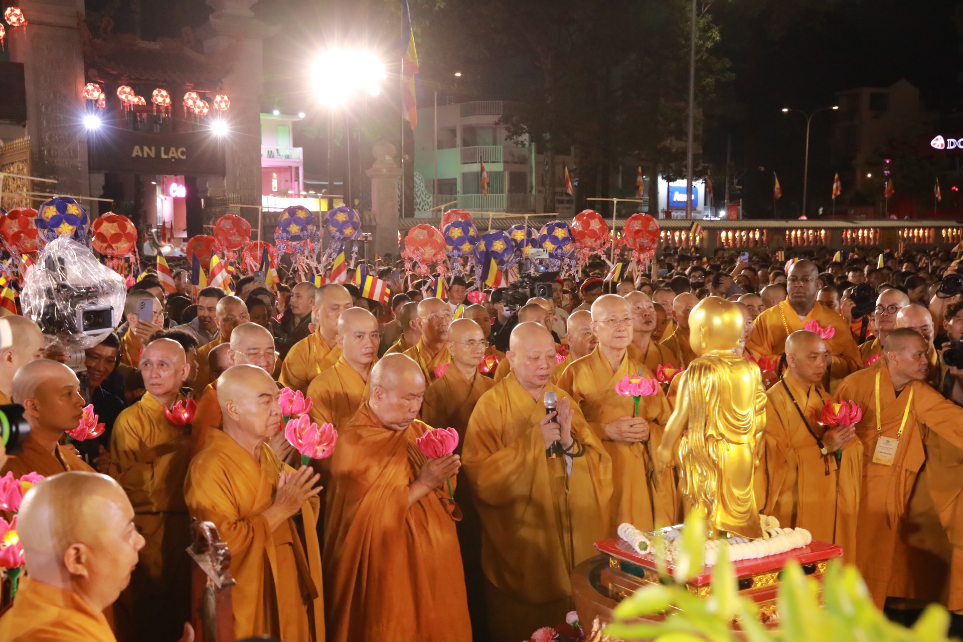 PTVN – Tối ngày mùng 8/4/Giáp Thìn (15/5/2024), Ban Trị sự GHPGVN TP.HCM đã trang nghiêm tổ chức lễ cung rước kiệu kim thân tôn tượng Đức Phật sơ sinh từ tổ đình Ấn Quang về lễ đài chính của Phật giáo TP.HCM – Việt Nam Quốc Tự cử hành Lễ Mộc dục (Tắm Phật), mở đầu cho tuần lễ Phật đản năm nay.