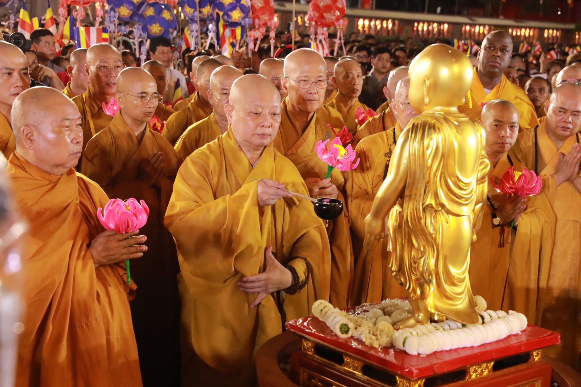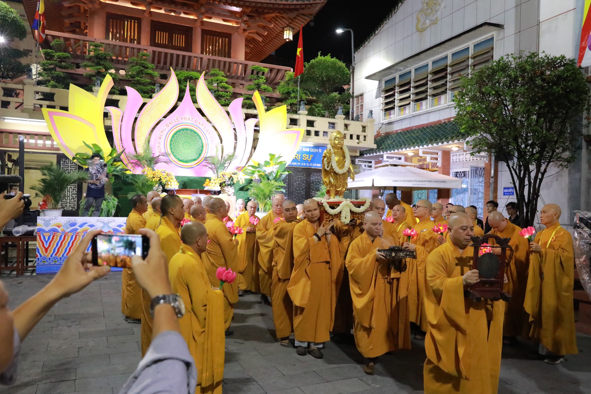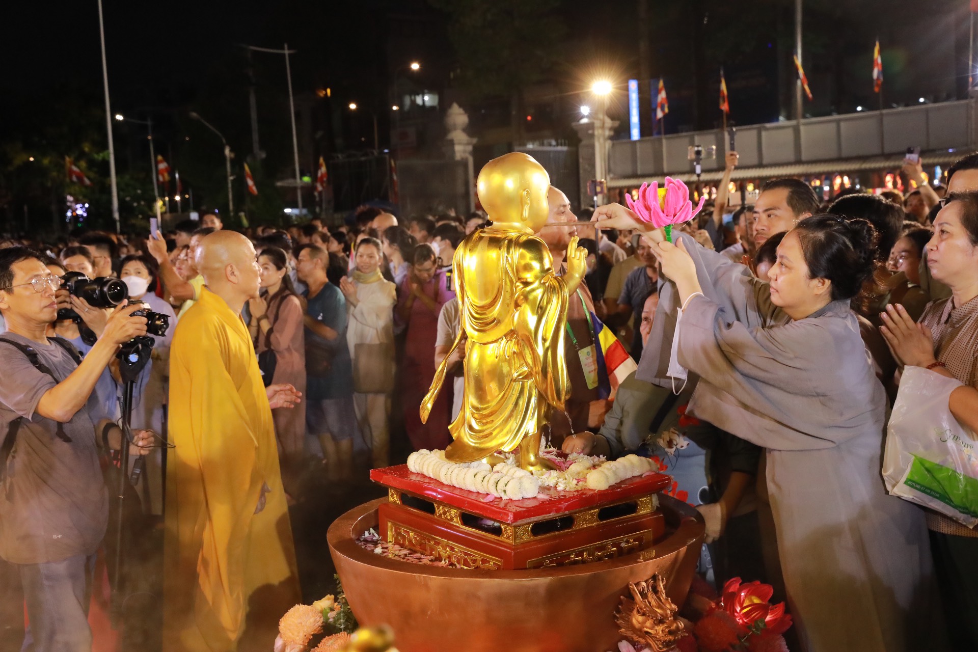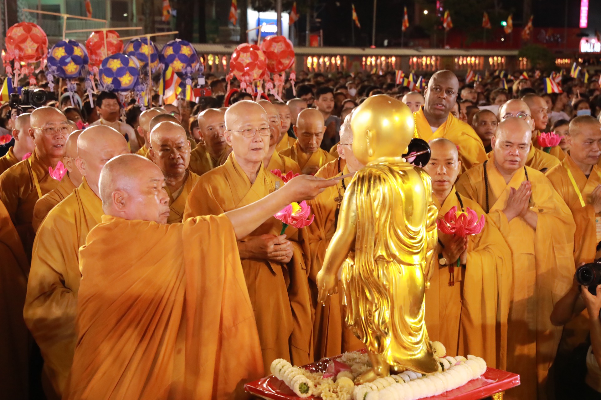 PTVN – Tối ngày mùng 8/4/Giáp Thìn (15/5/2024), Ban Trị sự GHPGVN TP.HCM đã trang nghiêm tổ chức lễ cung rước kiệu kim thân tôn tượng Đức Phật sơ sinh từ tổ đình Ấn Quang về lễ đài chính của Phật giáo TP.HCM – Việt Nam Quốc Tự cử hành Lễ Mộc dục (Tắm Phật), mở đầu cho tuần lễ Phật đản năm nay.