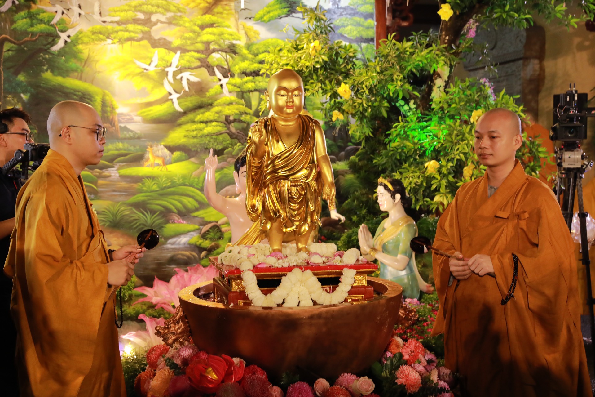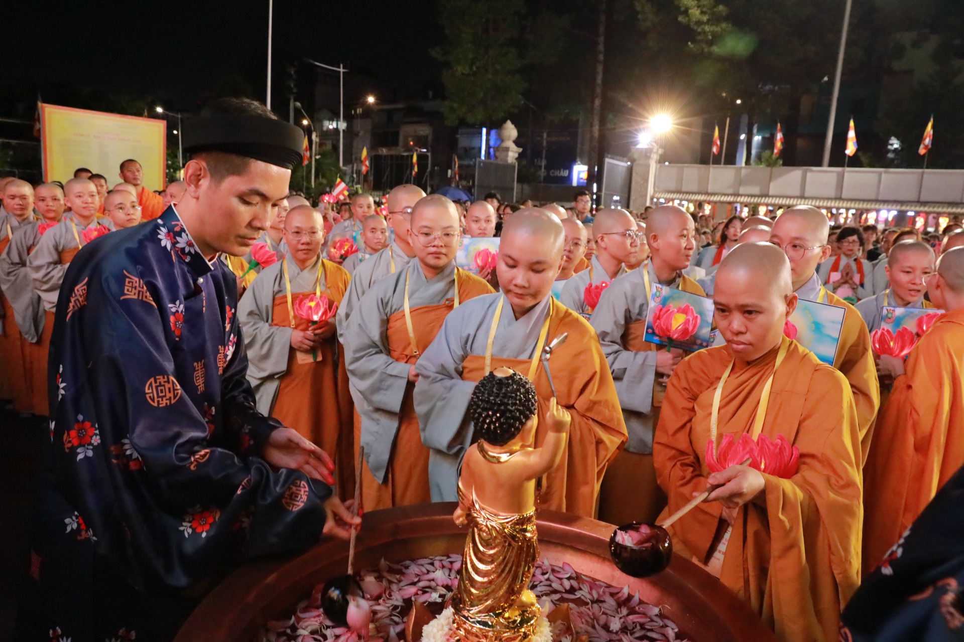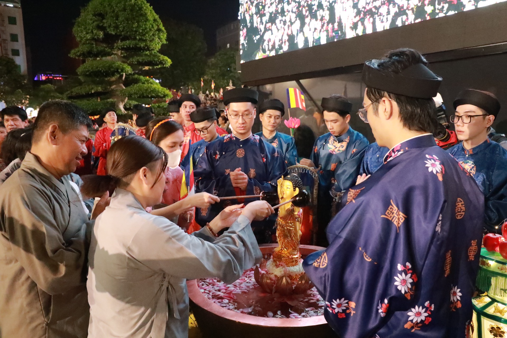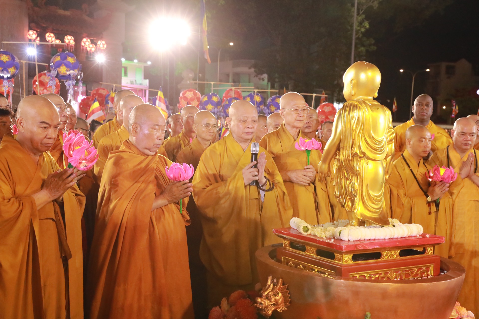PTVN – Tối ngày mùng 8/4/Giáp Thìn (15/5/2024), Ban Trị sự GHPGVN TP.HCM đã trang nghiêm tổ chức lễ cung rước kiệu kim thân tôn tượng Đức Phật sơ sinh từ tổ đình Ấn Quang về lễ đài chính của Phật giáo TP.HCM – Việt Nam Quốc Tự cử hành Lễ Mộc dục (Tắm Phật), mở đầu cho tuần lễ Phật đản năm nay.