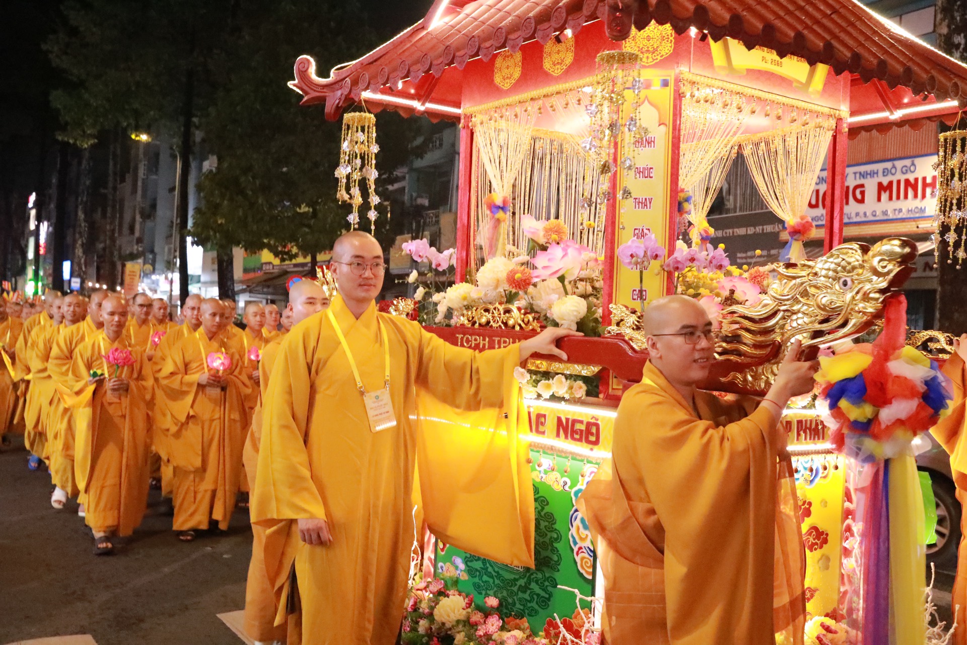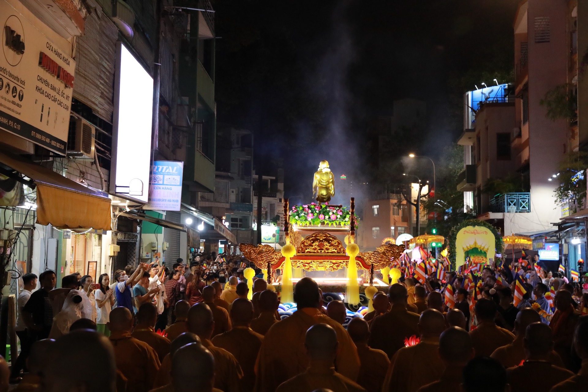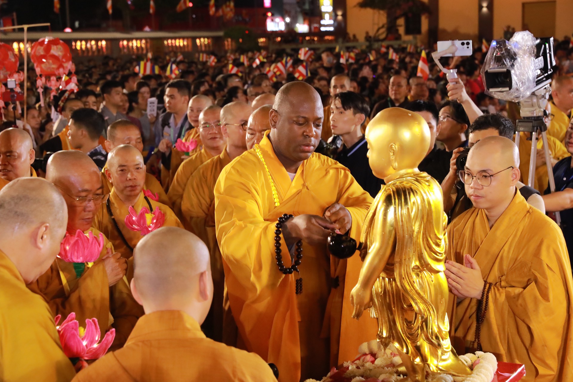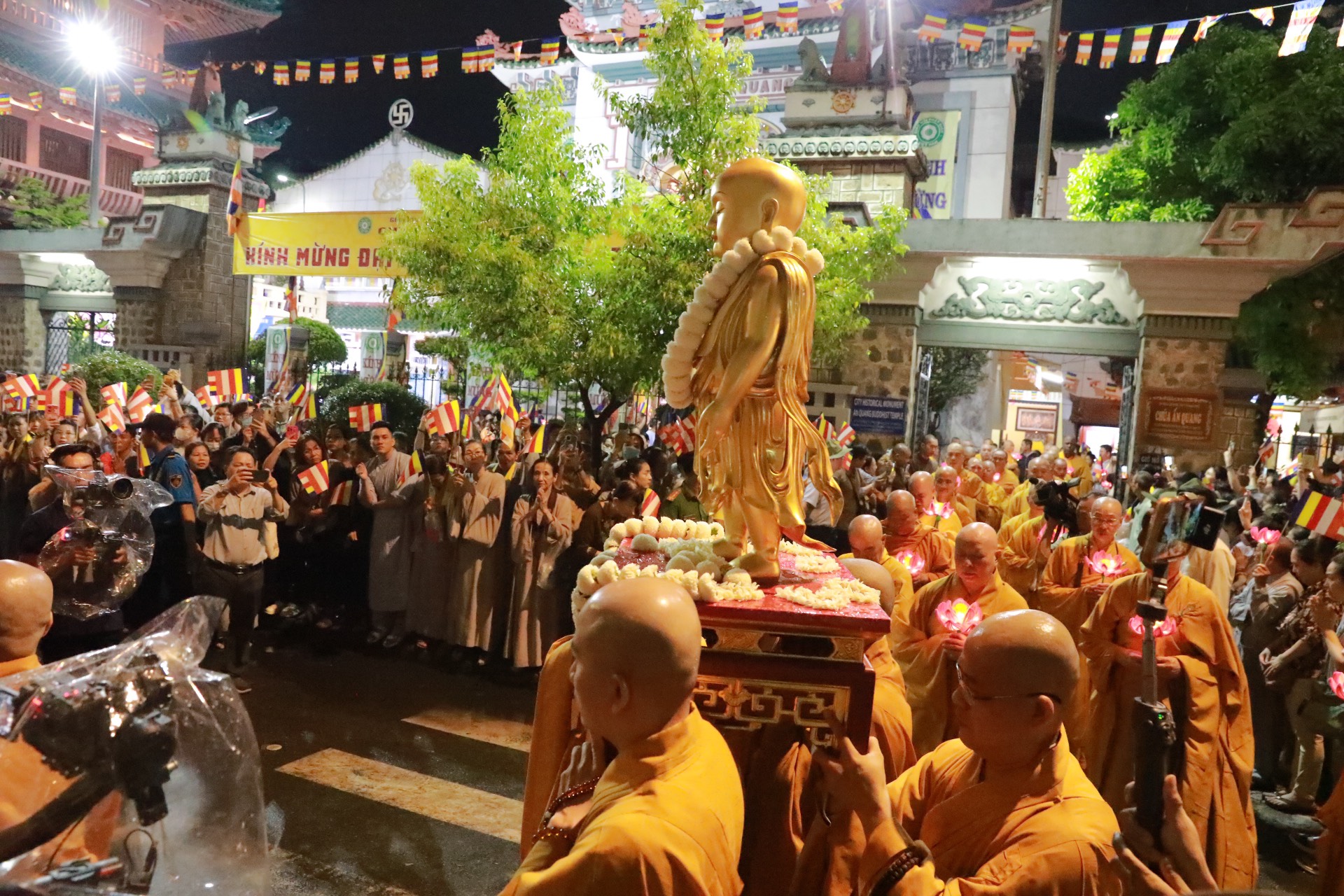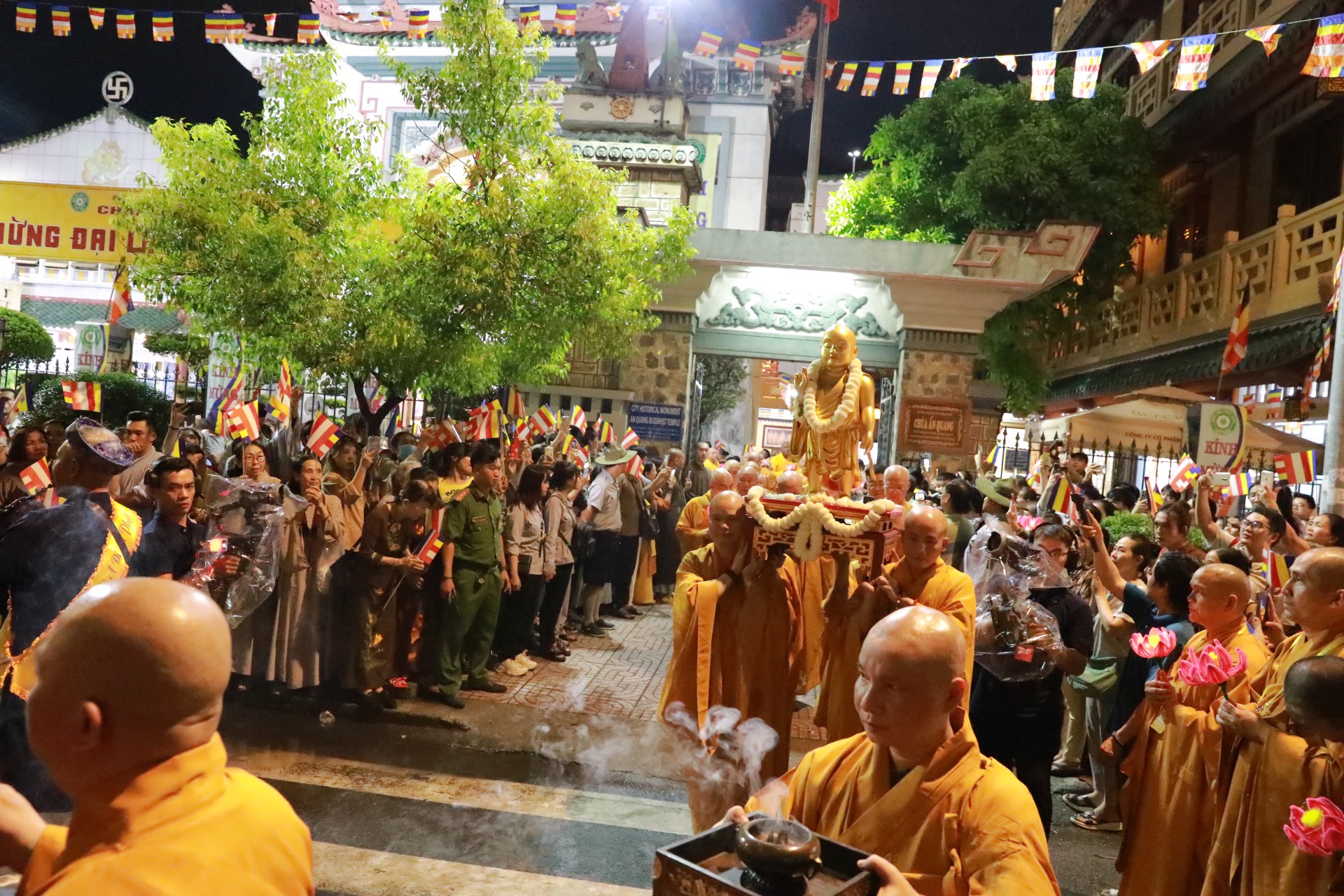 PTVN – Tối ngày mùng 8/4/Giáp Thìn (15/5/2024), Ban Trị sự GHPGVN TP.HCM đã trang nghiêm tổ chức lễ cung rước kiệu kim thân tôn tượng Đức Phật sơ sinh từ tổ đình Ấn Quang về lễ đài chính của Phật giáo TP.HCM – Việt Nam Quốc Tự cử hành Lễ Mộc dục (Tắm Phật), mở đầu cho tuần lễ Phật đản năm nay.