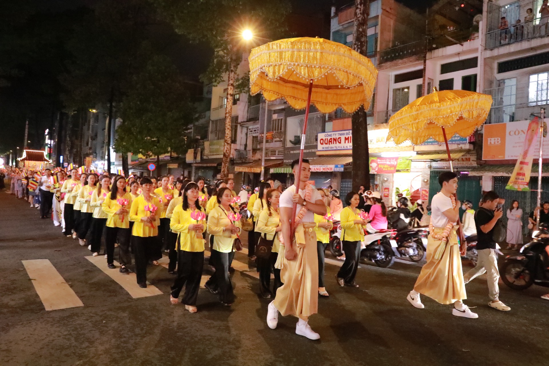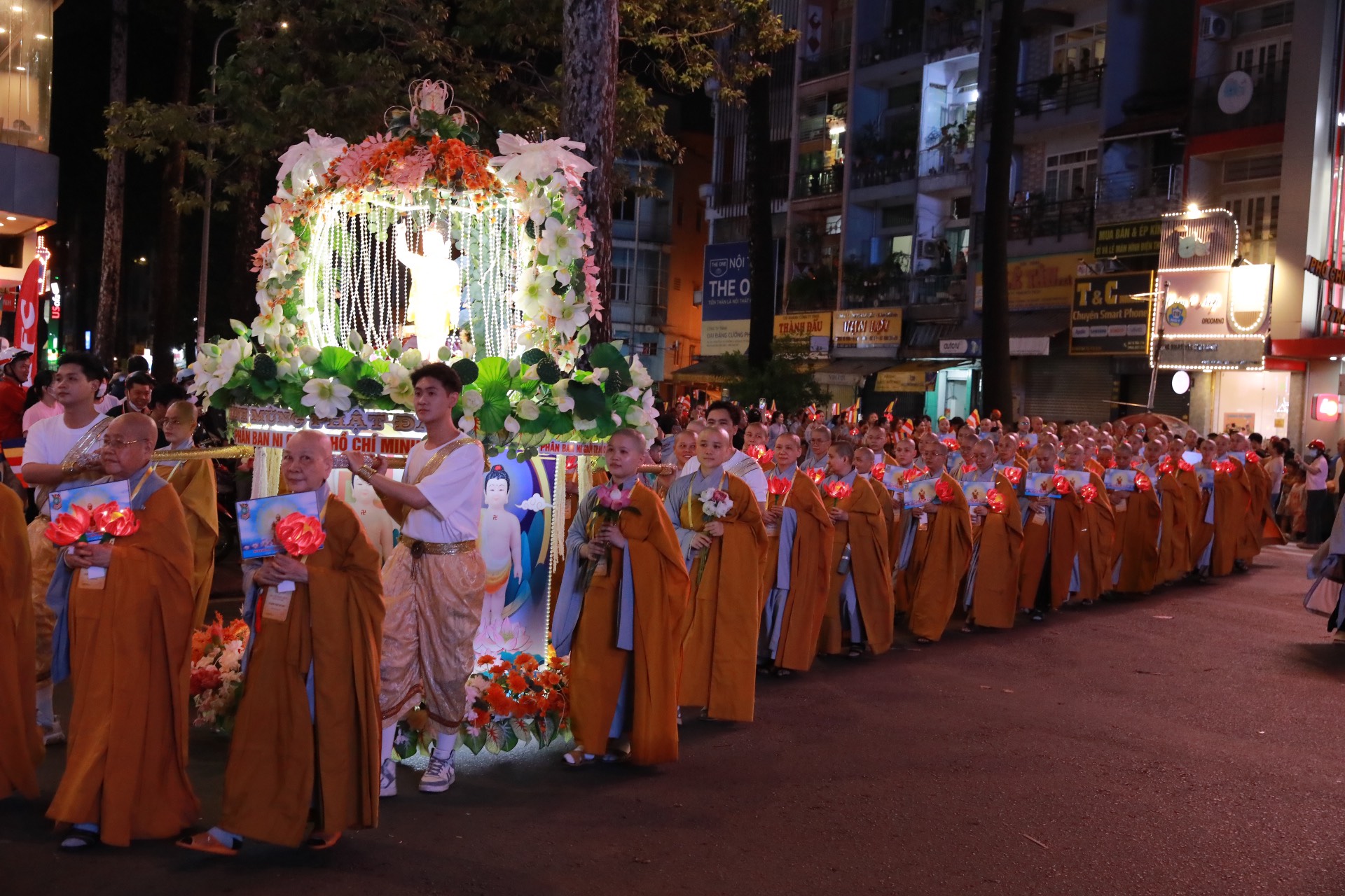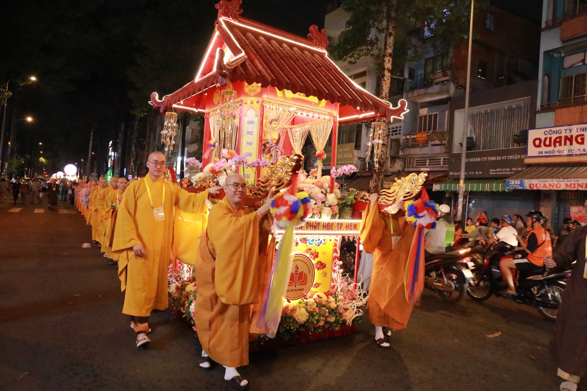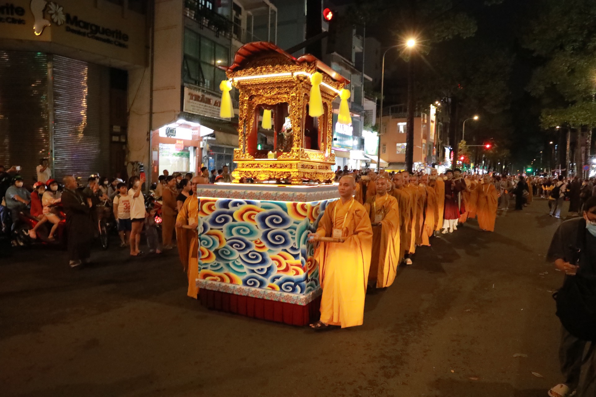PTVN – Tối ngày mùng 8/4/Giáp Thìn (15/5/2024), Ban Trị sự GHPGVN TP.HCM đã trang nghiêm tổ chức lễ cung rước kiệu kim thân tôn tượng Đức Phật sơ sinh từ tổ đình Ấn Quang về lễ đài chính của Phật giáo TP.HCM – Việt Nam Quốc Tự cử hành Lễ Mộc dục (Tắm Phật), mở đầu cho tuần lễ Phật đản năm nay.