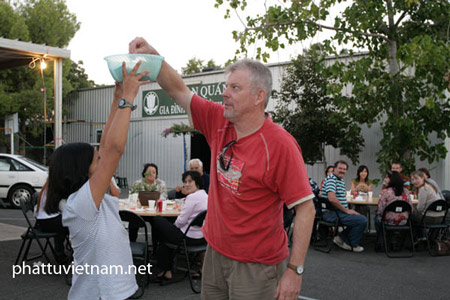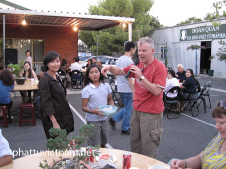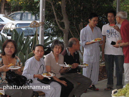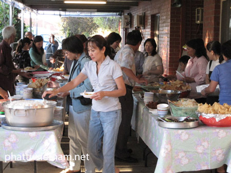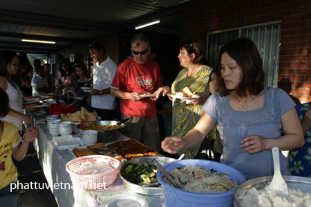 Buổi tiệc chay thân mật, ấm cúng tình đồng bào ruột thịt. Những người Úc bản xứ và người Úc gốc Việt khi đến chùa Pháp Hoa, ai nấy đều mua vé chờ sẵn để tham dự buổi tiệc chay, ủng hộ cứu trợ các nạn nhân không may bị hỏa hoạn.