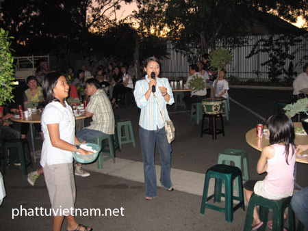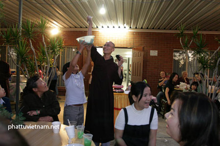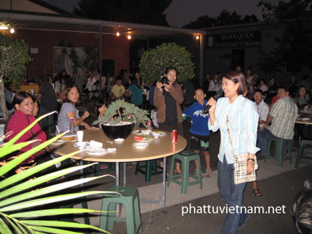 Quan khách đến dự tiệc vừa ăn vừa uống vừa tâm sự, họ nghe những bản nhạc âm hưởng đầy thi vị. Âm nhạc của đạo lý hình như đã đi vào lòng người, làm vơi đi những lo toan bận rộn mà trước đó, ai nấy đều gặp phải trong cuộc sống. Khi lắng nghe xổ số, mọi người đã vỗ tay và vui vẻ trong những đợt bốc thăm trúng thưởng; giải đặc biệt của trò chơi Lô tô là phần quà tượng đức Bồ tát Quán Thế Âm, cao 0.5 mét.
