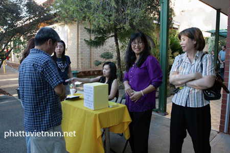 Các đồng hương Phật tử, khoảng hơn 300 người đã đến chia sẻ, ủng hộ cho công tác cứu tế theo đơn vị chùa Pháp Hoa. Người tham dự mua vé dự tiệc chay, công quả tạo phước điền, xổ số gây quỹ, góp nhặt tấm lòng vàng, thực hiện lòng từ bi thương người của nhà Phật, nhằm chia xẻ những nỗi đau mất mát với người Úc trong trận bão lửa kinh hoàng đầu tháng 2 vừa qua.