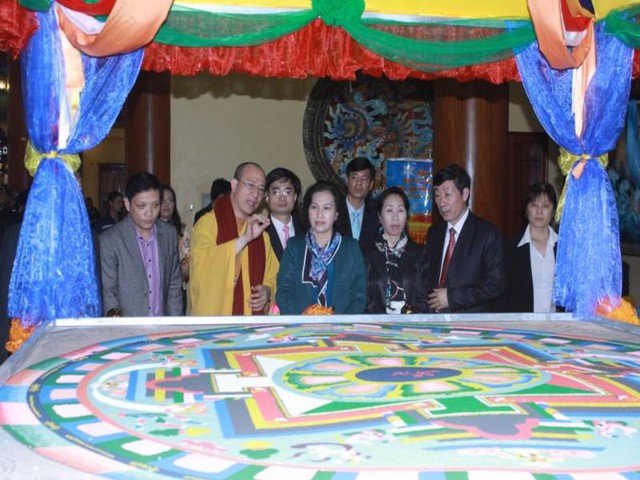 Một cuộc trò chuyện ngắn giữa Bà Nguyễn Thị Kim Ngân và Thầy trụ trì cùng Phái đoàn tại tầng 1 của Ngôi Đại hùng bảo điện mới đã diễn ra trong không khí vô cùng hoan hỷ và gần gũi. Thầy trụ trì đã chia sẽ về lịch sử phát triển của chùa cũng như sơ qua về quá trình xây dựng chùa và những trăn trở trong việc hoằng dương Phật Pháp để góp phần xây dựng, phát triển xã hội … và đã được Bà quan tâm lắng nghe.