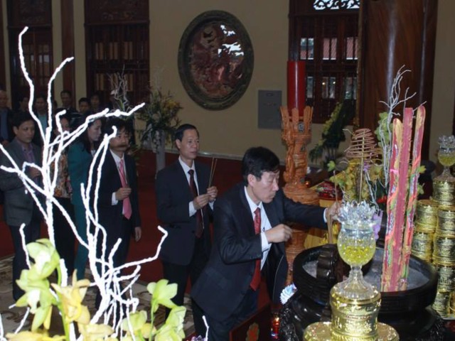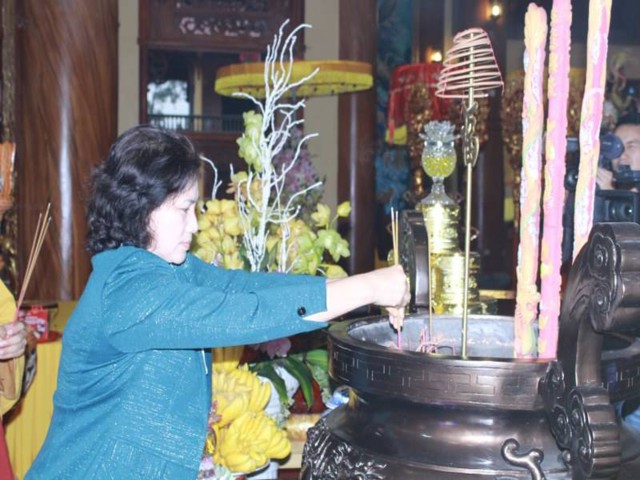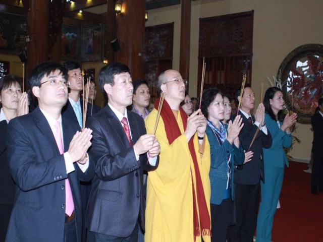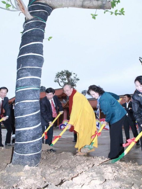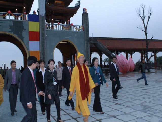 Đi cùng với phái đoàn còn có Ông Nguyễn Thành Phố – Bí thư Thành ủy – Chủ tịch HĐND Thành phố Uông Bí, Ông Nguyễn Ngọc Thu – Phó Bí thư Thành ủy, Chủ tịch UBND Thành phố Uông Bí. Sau khi dâng hương lễ Phật, Bà cùng phái đoàn đã được nhà chùa mời trồng cây lưu niệm. Đại Đức Thích Trúc Thái Minh trụ trì chùa Ba Vàng và Tăng chúng tại bổn tự vô cùng hân hoan và vinh dự được tiếp đón phái đoàn.