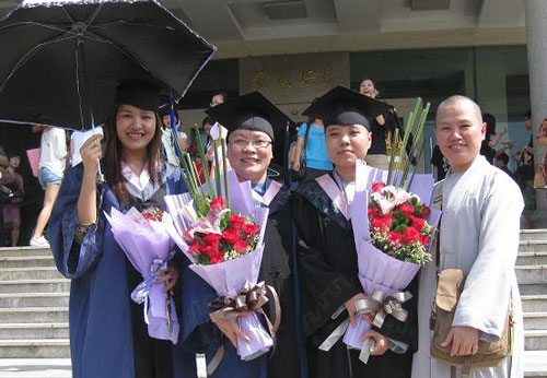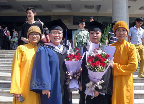 Sáng ngày 25 tháng 6 vừa qua, trường đại học sư phạm tỉnh Phúc Kiến tọa lạc tại khu Kỳ Sơn, Mân Hầu, thành phố Phúc Châu, tỉnh Phúc Kiến đã long trọng cử hành lễ tốt nghiệp cho hơn 1200 sinh viên nghiên cứu sinh tiến sĩ, thạc sĩ và sinh viên đại họ, trong đó có 8 sinh viên Việt Nam, đặt biệt có 2 Sư cô : SC.Thích nữ Huệ Như( thạc sĩ Tâm lý giáo dục học); SC.Thích nữ Nhật Chính (hệ đại học ngành ngôn ngữ học).