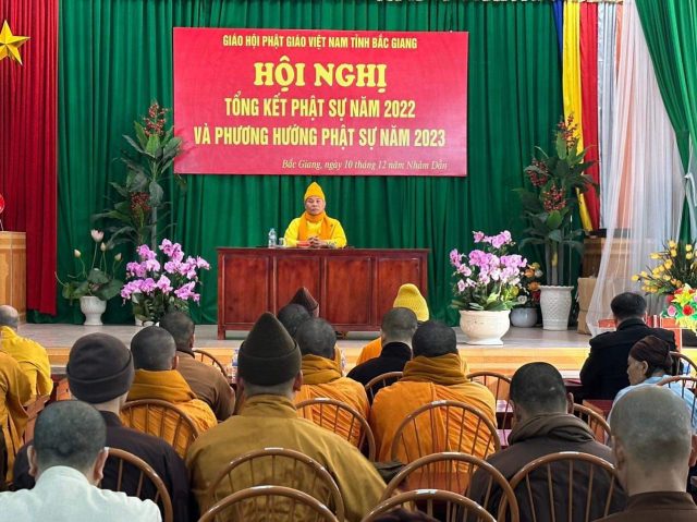 Buổi họp dưới sự chủ tọa của Thượng tọa Thích Thiện Văn, Trưởng ban Trị sự GHPGVN tỉnh Bắc Giang, chư tôn Thượng toạ, Ni Trưởng, Ni sư, Đại Đức Tăng, Ni trong Ban Trị sự cùng với đại diện lãnh đạo chính quyền tham dự. Tại phiên họp, chư tôn đức thảo luận các nội dung liên quan đến công tác chuẩn bị cho chương trình tổng kết hoạt động Phật sự năm 2022 và phương hướng hoạt động Phật sự của năm 2023 sắp tới.