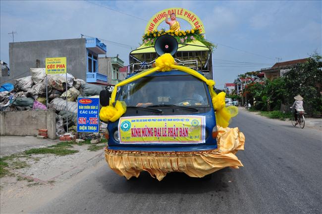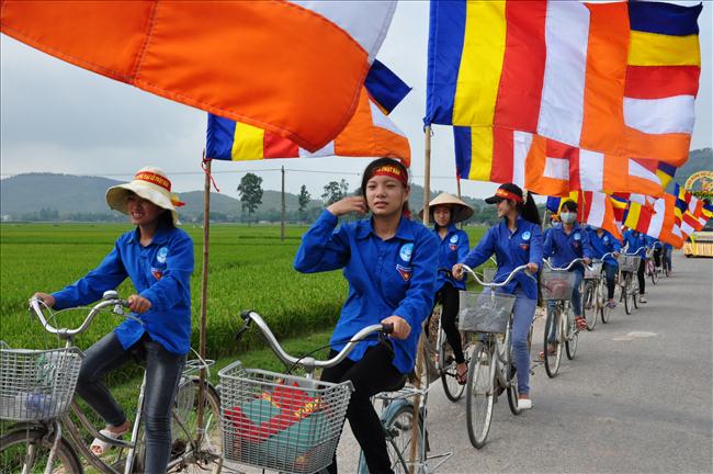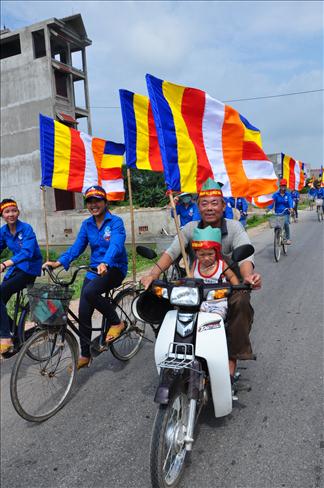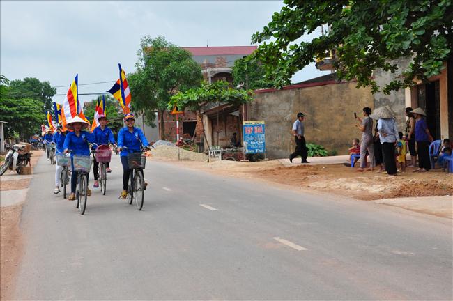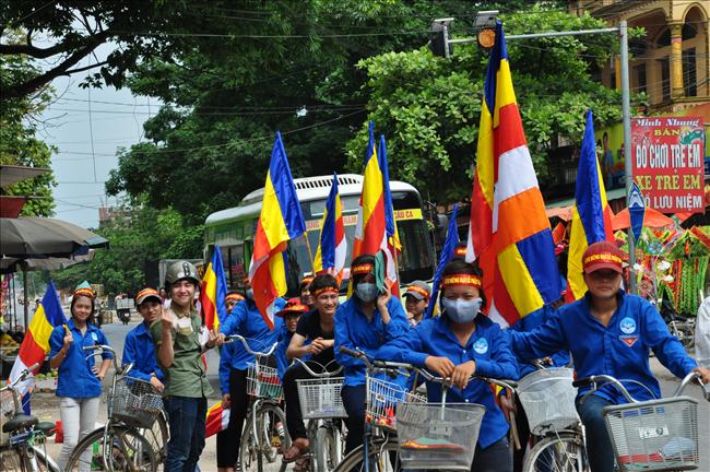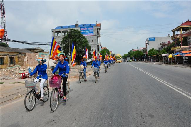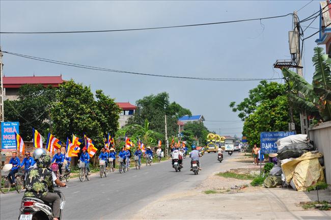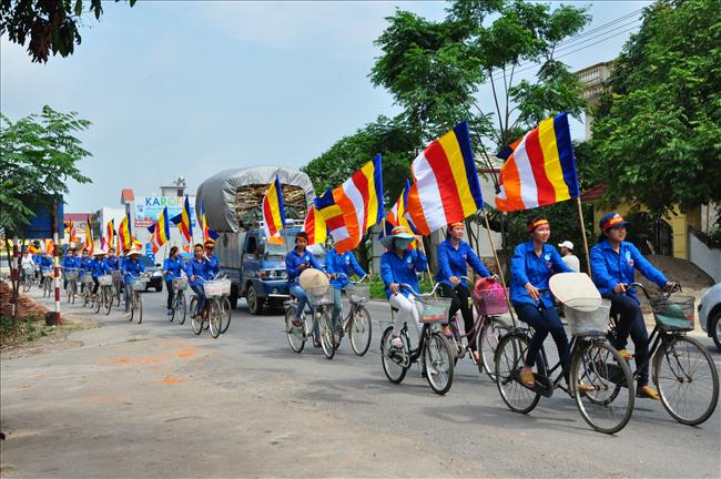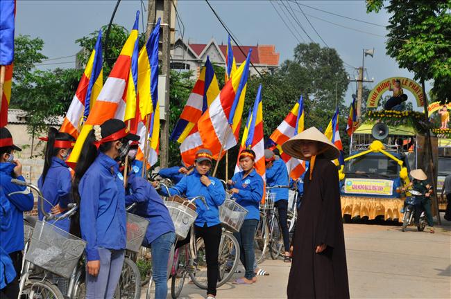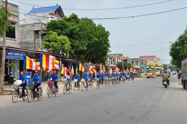 Trên khắp các nẻo đường, những chiếc áo xanh tình nguyện hòa với màu cờ Phật giáo tung bay rực rỡ dưới nắng hè, những màu sắc ấy đã thổi một làn gió mới đến với tỉnh Bắc Giang nói chung và huyện Việt Yên nói riêng. Đoàn rước đi đến đâu cũng gây được sự chú ý của đông đảo nhân dân trong vùng, tạo nên một niềm tôn kính nhất định với Phật giáo.