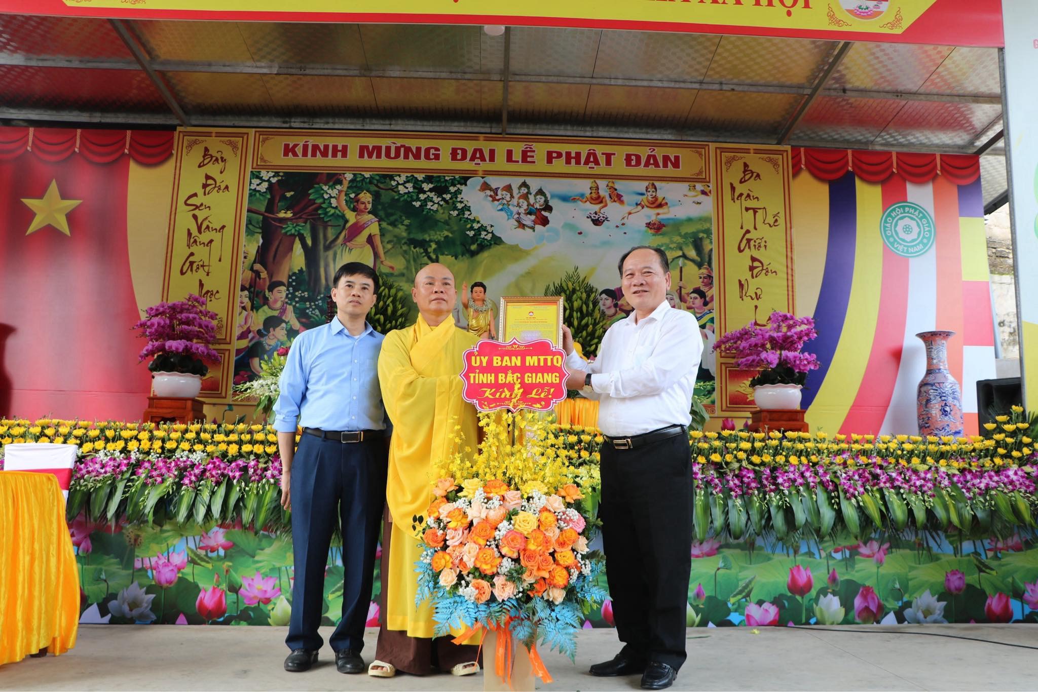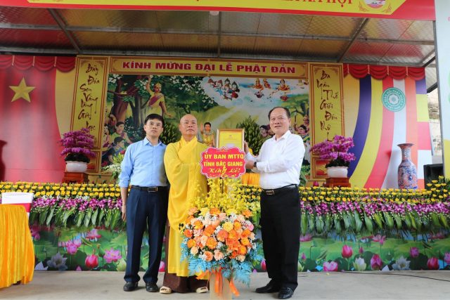 Sau đó, Đại đức Thích Pháp Minh – phó trưởng BTS GHPGVN huyện Lạng Giang đã tuyên đọc Diễn văn khai mạc đại lễ Phật đản của trưởng lão hoà thượng chủ tịch HĐTS GHPGVN, diễn văn nêu rõ mỗi một chúng sinh vì bảo vệ đất nước mà hy sinh đó là thực hành Bồ Tát hạnh “Nhìn lại chặng đường lịch sử đó, Phật giáo Việt Nam tự hào đã góp phần vào chiến thắng hào hùng của dân tộc, góp phần làm nên bản lĩnh và trí tuệ Việt Nam với các thế hệ chư Tăng tham gia phong trào cởi áo cà sa, khoác chiến bào năm 1947. Đó cũng là minh chứng lịch sử tiếp nối hào khí Đông A thời Trần của Phật giáo Trúc Lâm, của Đức vua Phật hoàng Trần Nhân Tông trong dòng chảy lịch sử Phật giáo Việt Nam. Đồng thời, cũng chính là minh chứng hiện thực cho hạnh nguyện cao cả của các bậc Bồ tát đi vào đời thường phát tâm đại nguyện như trong Luận Đại Trượng Phu nêu rõ: “Bồ tát hy sinh tất cả, đại thí cứu người. Người cứu vớt người thì bố thí tất cả, có gì là khó. Người ấy là người tối thắng của muôn loài, là người hướng dẫn muôn loài đạt được sự an lạc. Người ấy là con người của từ bi, nên hy sinh tất cả mà không ngần ngại. Người ấy là người chân thật cứu người, cứu đời”.