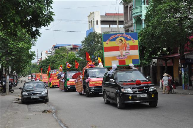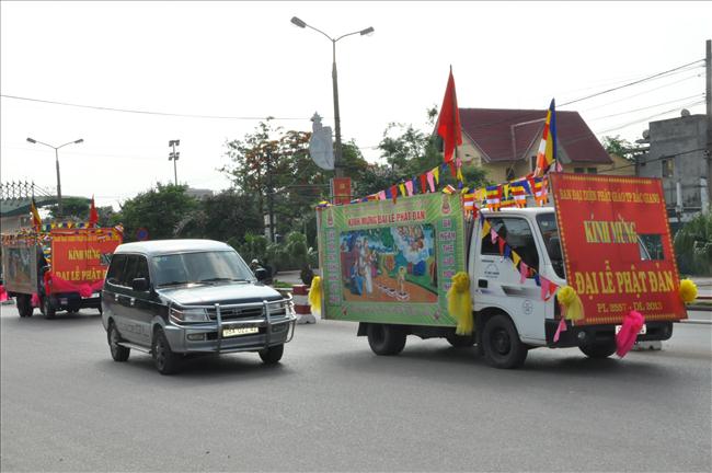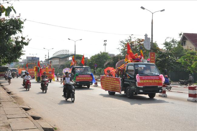Để hưởng ứng ngày Đản sinh của Đấng Từ Phụ, trong hai ngày 14 và 15 tháng 04 năm Quý Tỵ, chư tôn đức trong Ban trị sự và nhân dân Phật tử đã tổ chức diễu hành xe hoa mừng Phật Đản quanh các tuyến phố lớn trong tỉnh.