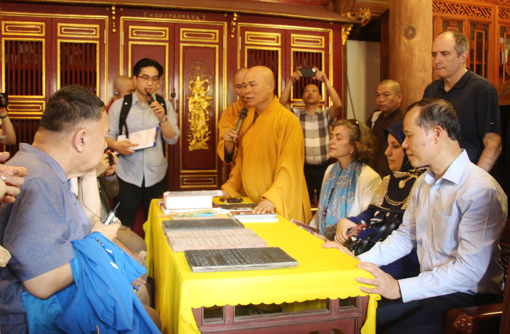 Thông qua sự giới thiệu của cán bộ chuyên môn và trụ trì chùa Vĩnh Nghiêm, các thành viên trong đoàn ấn tượng trước quy mô, cảnh quan, giá trị lịch sử, văn hóa của di tích, đặc biệt là kho mộc bản đã được UNESCO ghi danh là Di sản tư liệu thuộc Chương trình Ký ức thế giới khu vực châu Á – Thái Bình Dương.