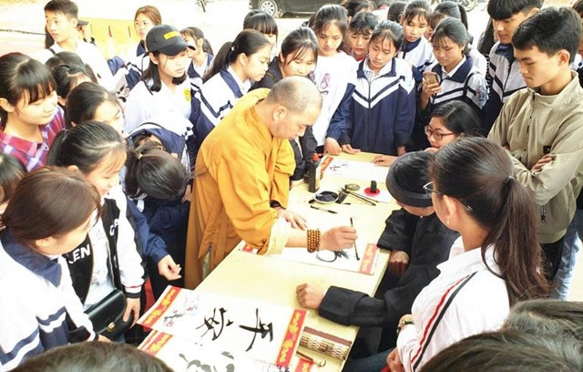 Ngoài ra, thông qua thời pháp này, Đại đức cũng giảng cho các bạn trẻ hiểu được vai trò của đạo phật trong việc định hình đạo đức của xã hội và mong muốn ngày càng nhiều các bạn trẻ được tham gia tu học tại các ngôi chùa trong và ngoài tỉnh. Trong buổi sinh hoạt còn có các hoạt động ngoại khóa như: giao lưu văn nghệ, chơi các trò chơi dân gian mang đậm tính nhân văn sâu sắc. Trước khi ra về, các bạn trẻ còn được quý thầy tặng chữ Thư Pháp nhân dịp đầu xuân.
