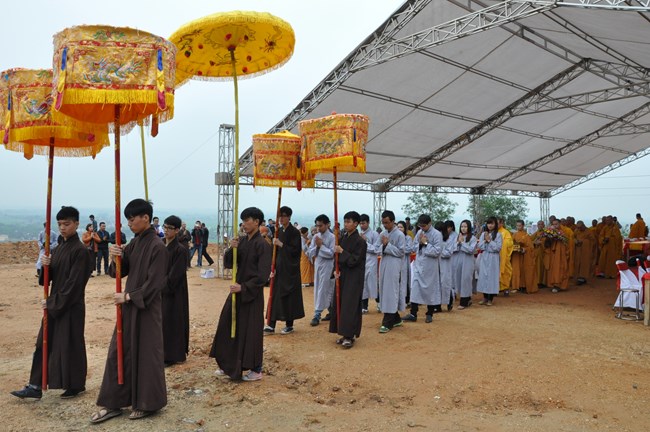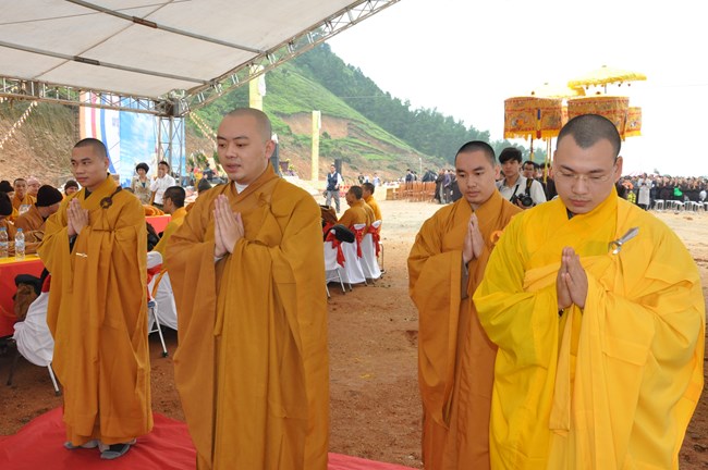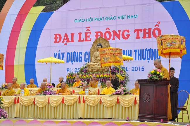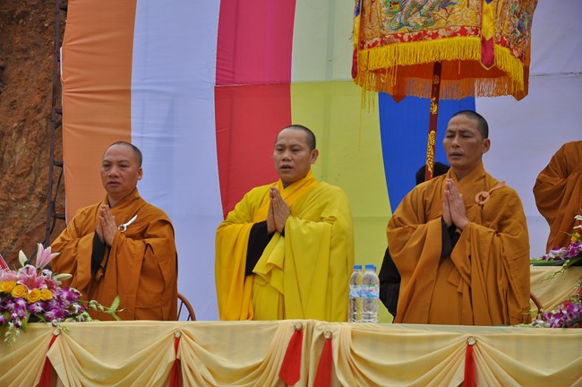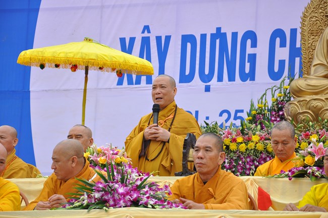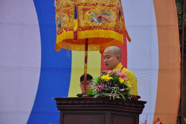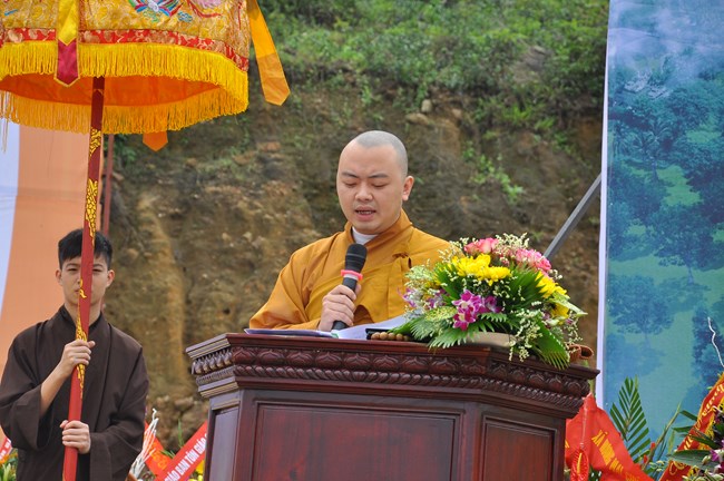 Mở đầu buổi lễ là lời phát biểu khai mạc của Đại đức Thích Pháp Minh – Ủy viên Ban Hoằng Pháp TW GHPGVN, Trưởng Ban Hoằng Pháp TW GHPGVN tỉnh Bắc Giang, Trưởng Ban hưng công xây dựng chùa Ích Minh Thượng.
