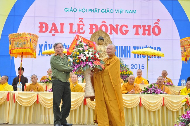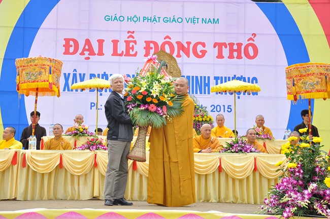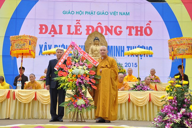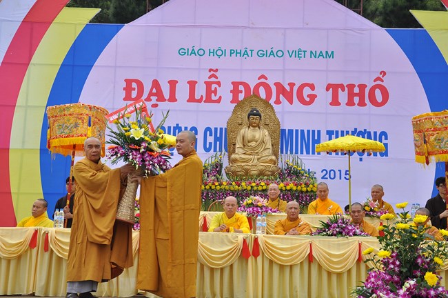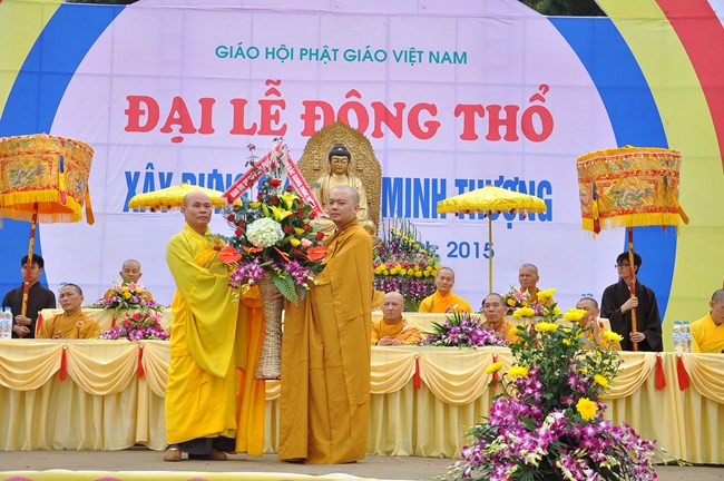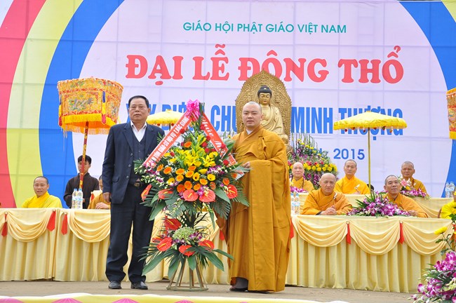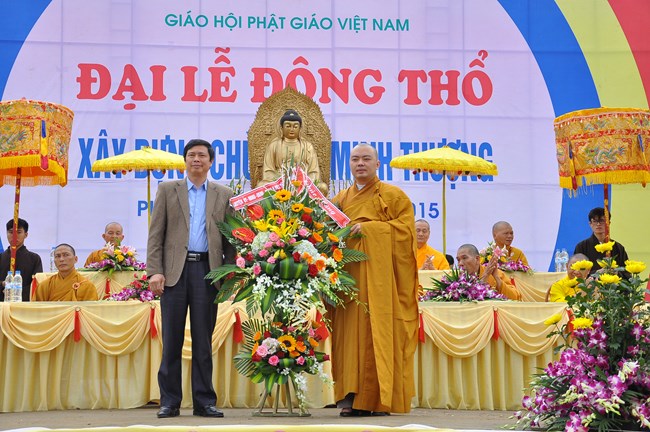 Nhân dịp này, Ban tổ chức cũng đã hoan hỷ đón nhận những lẵng hoa tươi thắm của chư tôn đức TW GHPGVN, các cấp chính quyền chúc mừng cho sự kiện trọng đại này của tỉnh Bắc Giang nói chung và huyện Việt Yên nói riêng.