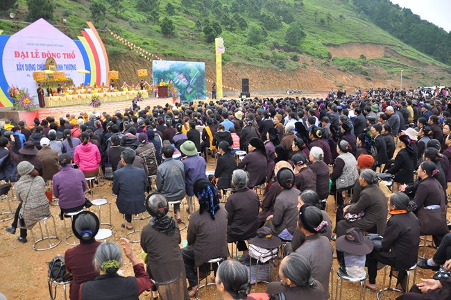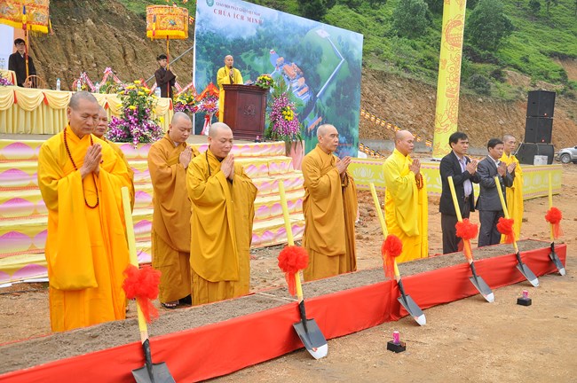 Tại buổi lễ, Chư tôn đức Tăng Ni đã làm lễ niêm hương cầu nguyện quốc thái dân an và cầu nguyện cho ngôi Già lam sớm được thành tựu viên mãn, thi công theo đúng kế hoạch và sớm được đưa vào sử dụng để phục vụ cho nhu cầu tín ngưỡng văn hóa tâm linh của Phật tử, nhân dân địa phương. Đồng thời, đại diện chư tôn đức Giáo phẩm cùng các cấp chính quyền địa phương đã xúc những xẻng cát đâu tiên chính thức khởi công động thổ xây dựng chùa Ích Minh Thượng trong niềm hoan hỷ của Chư tôn đức Tăng Ni tham dự buổi lễ, các cấp chính quyền và Phật tử nhân dân địa phương.