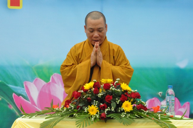 Mở đầu buổi lễ, Đại đức trụ trì Thích Pháp Tuệ đã dâng lời phát nguyện trước chư tôn đức và toàn thể đại chúng.
