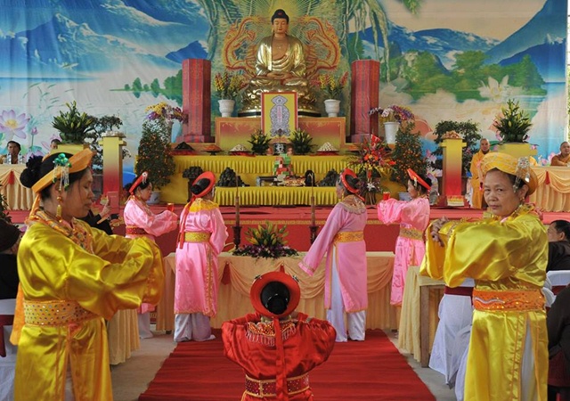 Trong không gian tịch tịnh sâu lắng nghiêm trang, lễ dâng hương được tổ chức do các Phật tử dâng lên lẵng hoa tươi thắm trước màu huỳnh y trang nghiêm thanh tịnh. Buổi lễ kết thúc trong niềm hoan hỷ của những người con Phật trong mừng ngày khai pháp và lễ cầu an đầu xuân mới Mậu Tuất (2018).